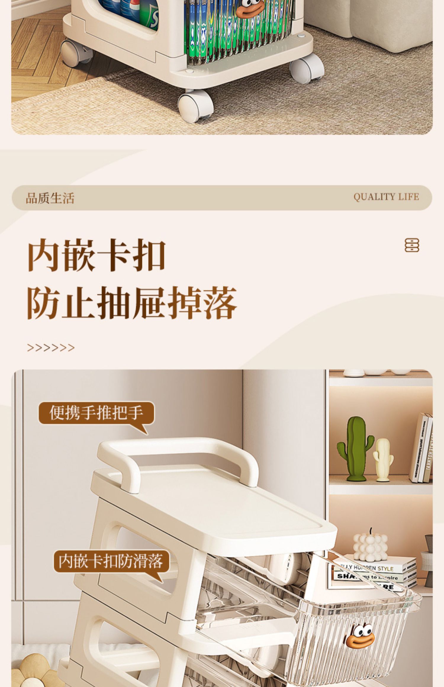 스낵 보관함 트롤리 바닥에 놓인 다층 가정용 보관함 서랍형 모바일 어린이 장난감 보관 캐비닛