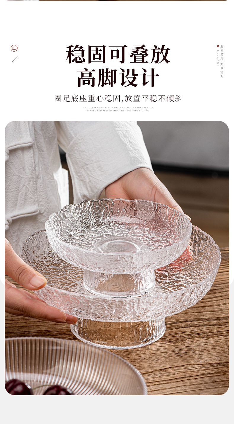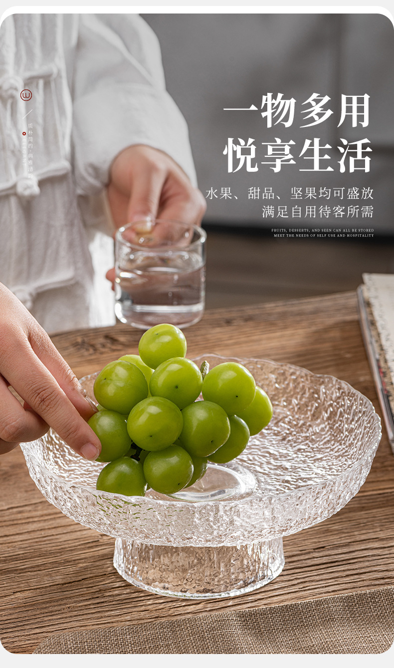 새로운 유리 과일 접시, 거실, 가정용 가벼운 고급 커피 테이블 장식품, 높은 사탕, 스낵, 말린 과일 접시 및 바구니