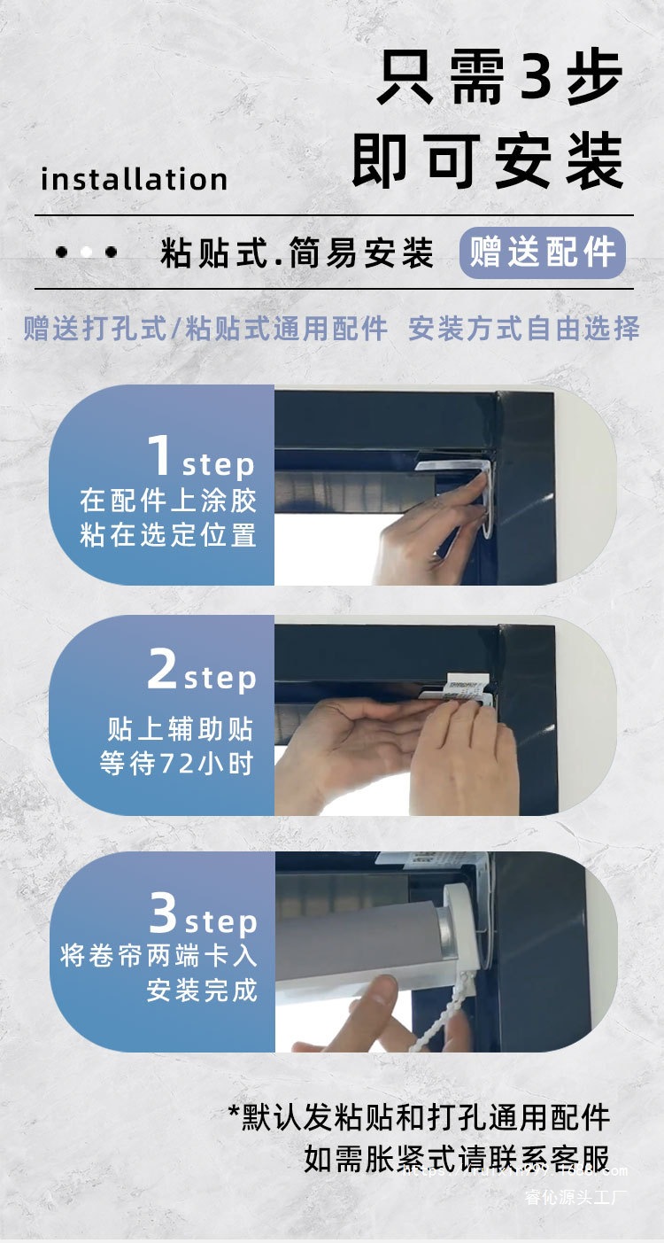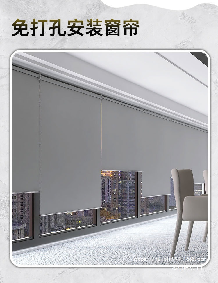 2025년 신형 커튼 차양 롤 풀 차양 설치가 필요 없는 사무실 완전 차광 욕실 블라인드