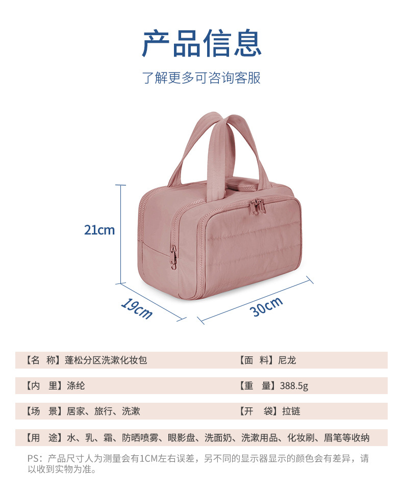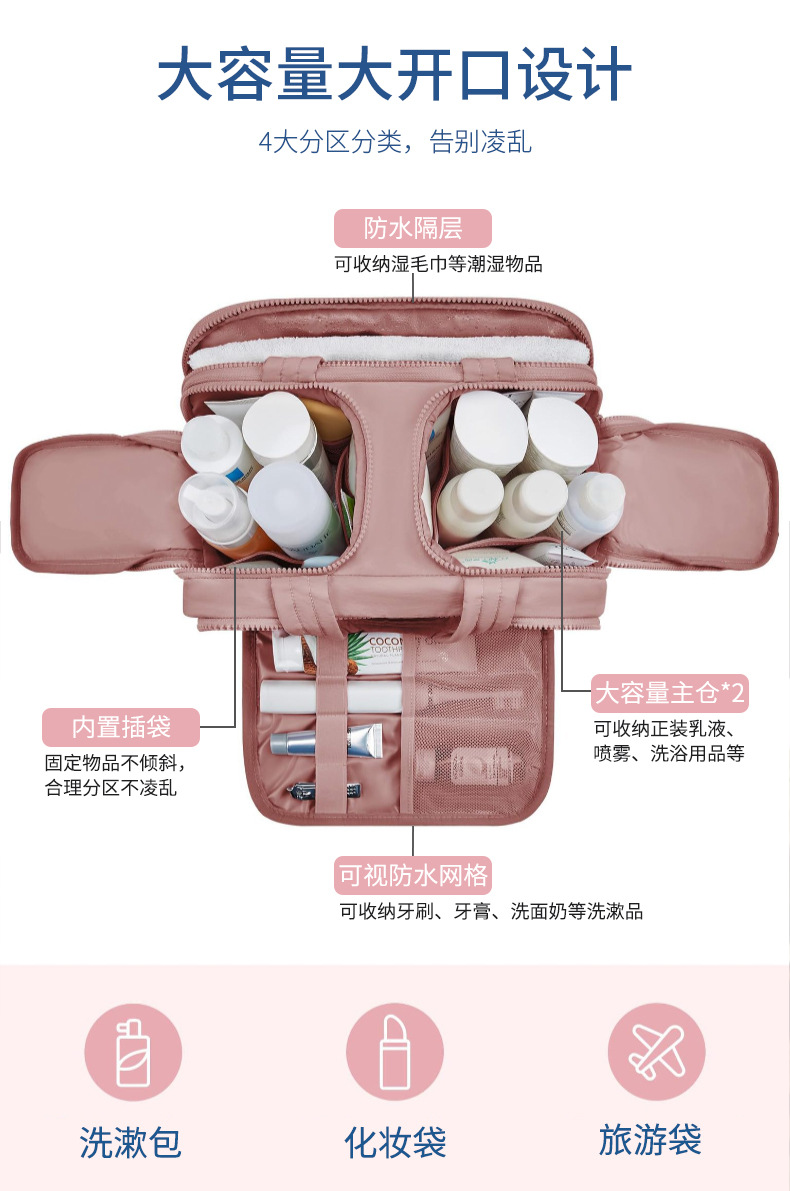 小红书同款便携洗漱包轻质蓬松化妆包轻奢高级分区收纳旅行手提包