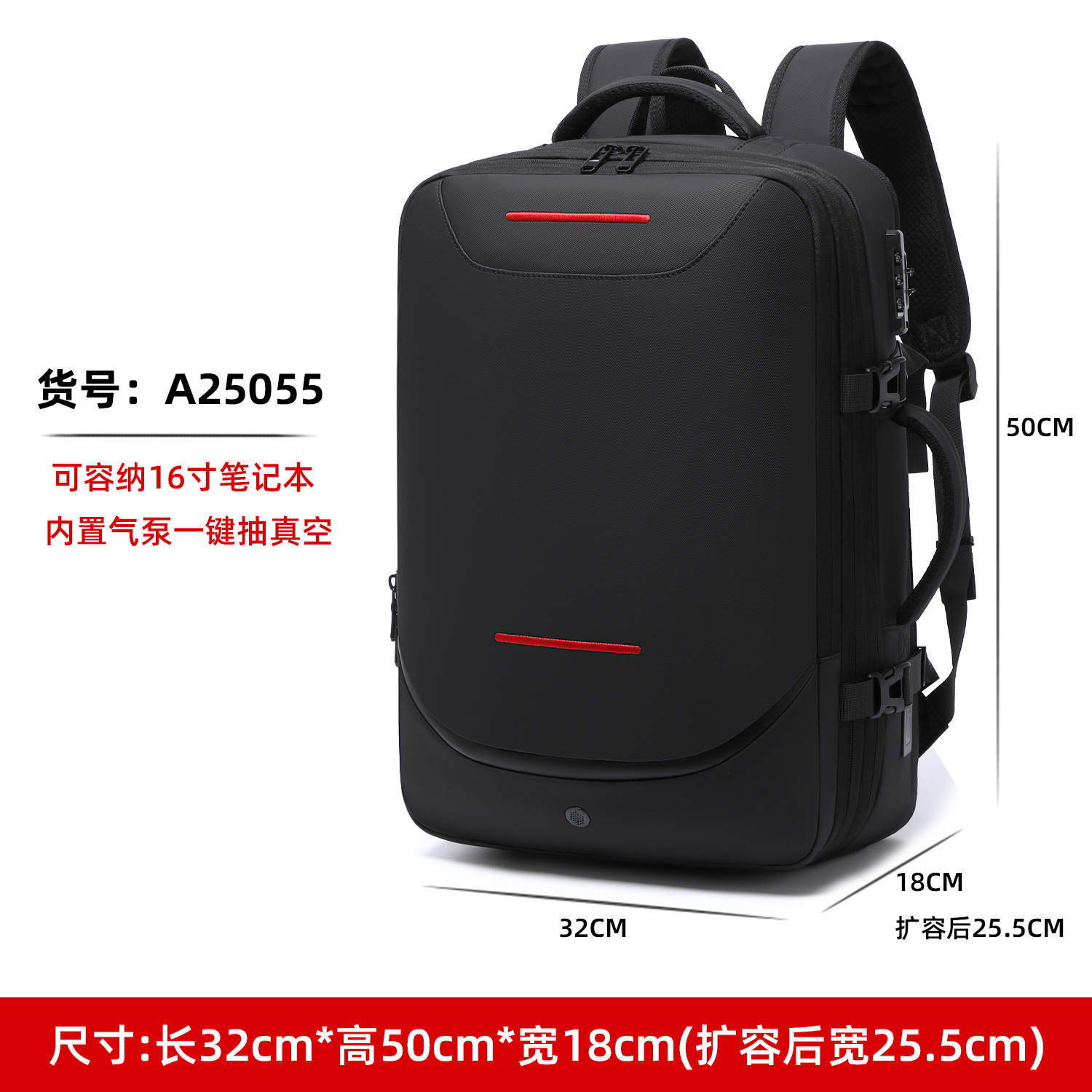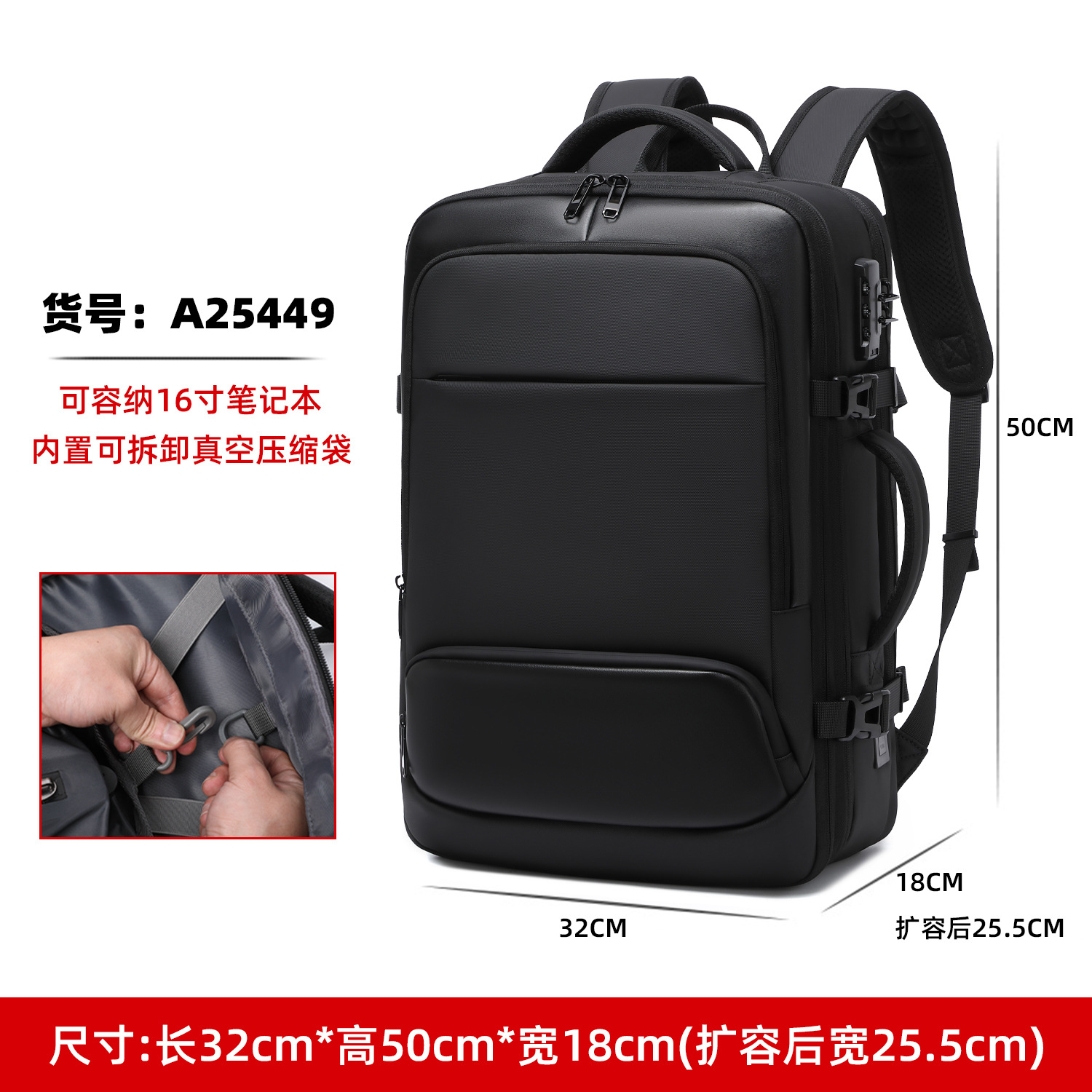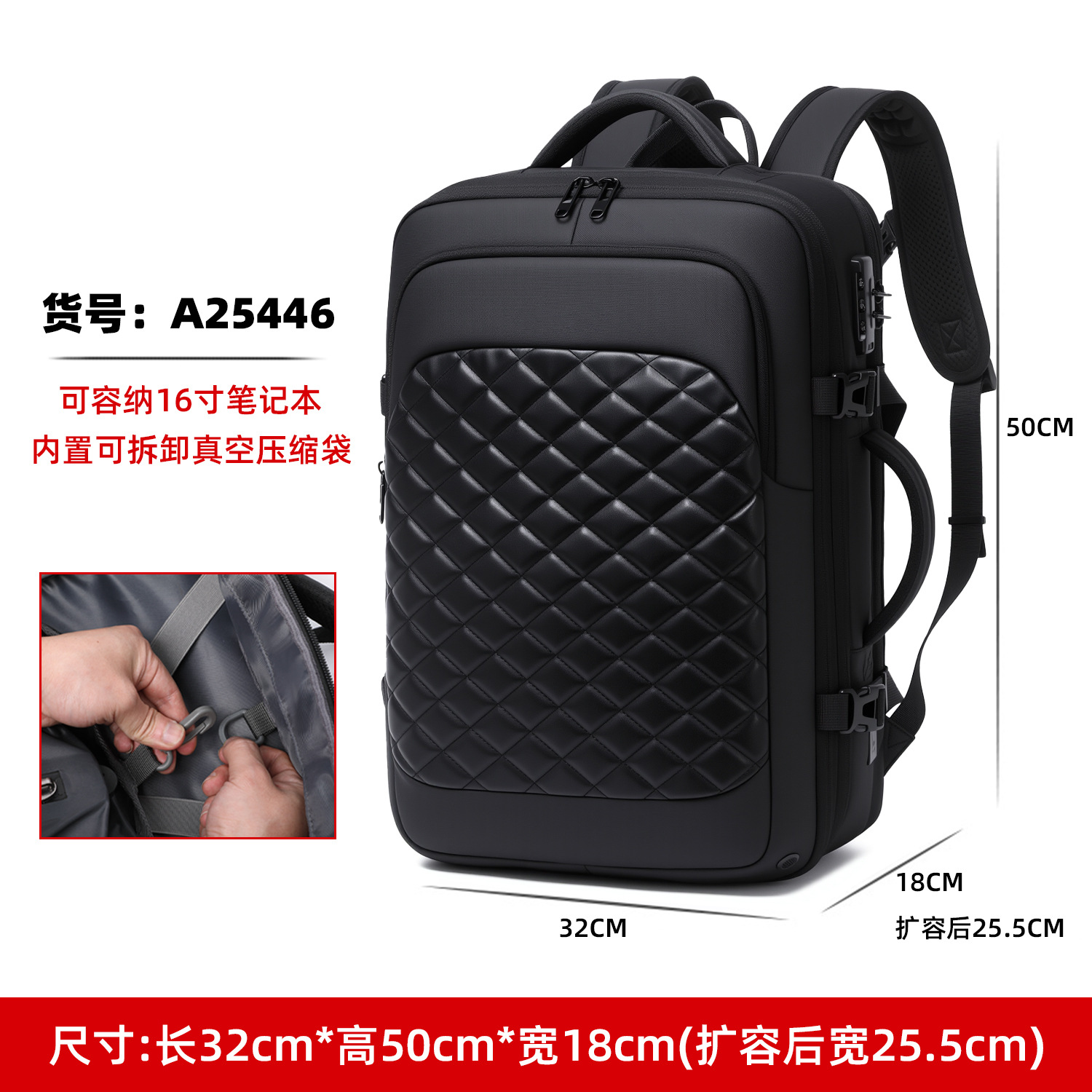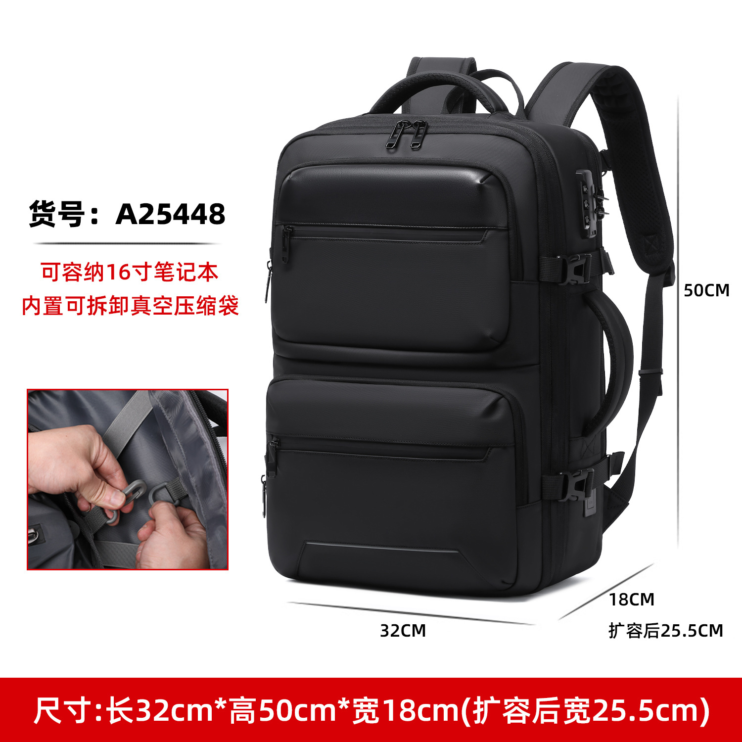 남성용 비즈니스 컴퓨터 백팩, 출장 여행용 진공 백팩, 대용량 진공 압축 백팩