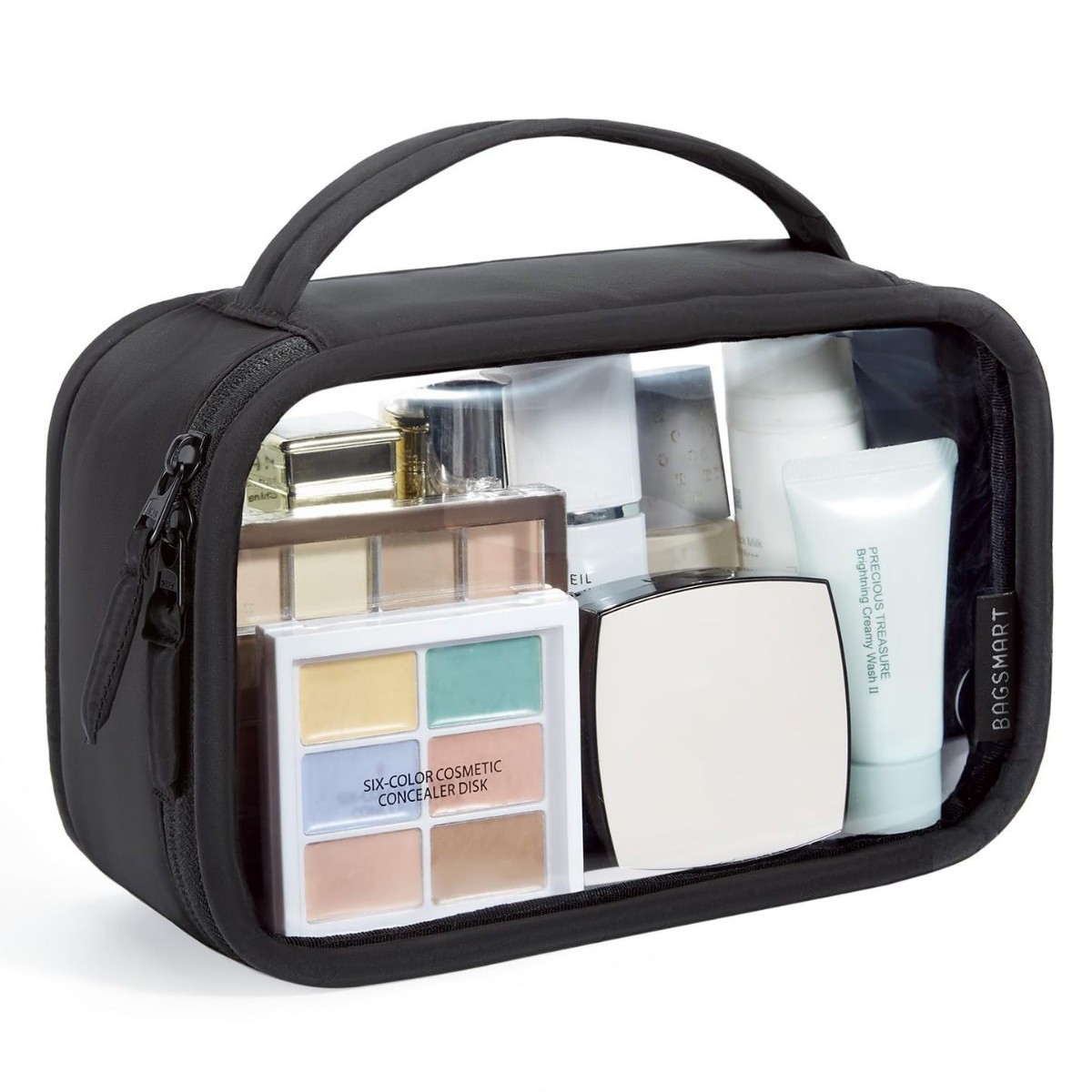 항공 운송에 적합한 남녀공용 손잡이가 있는 새로운 대형 개방형 투명 화장품 가방