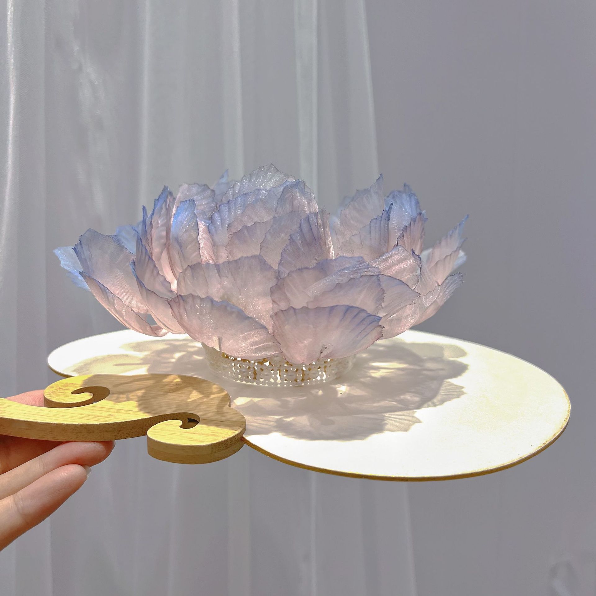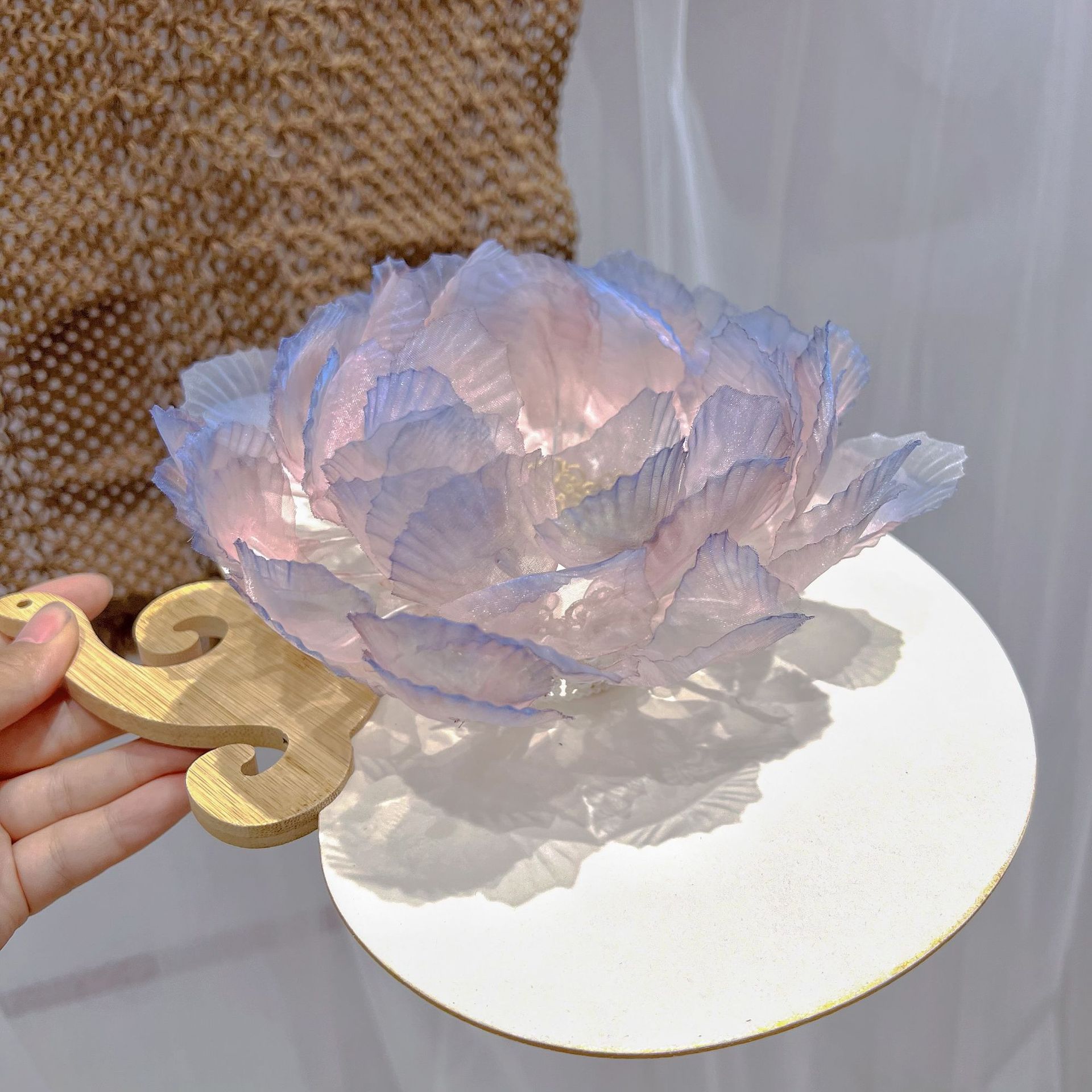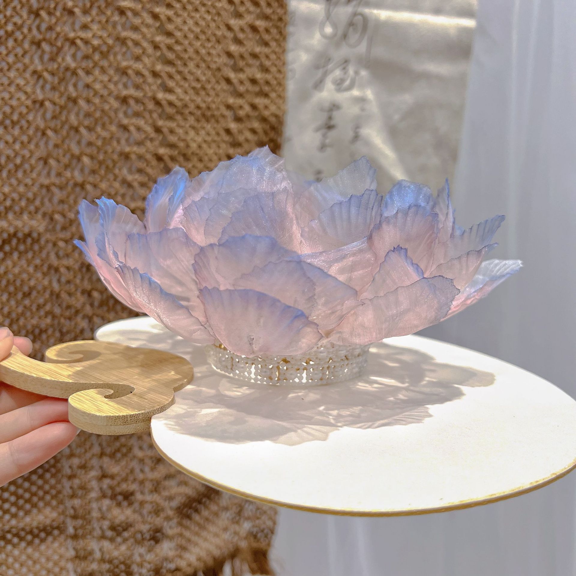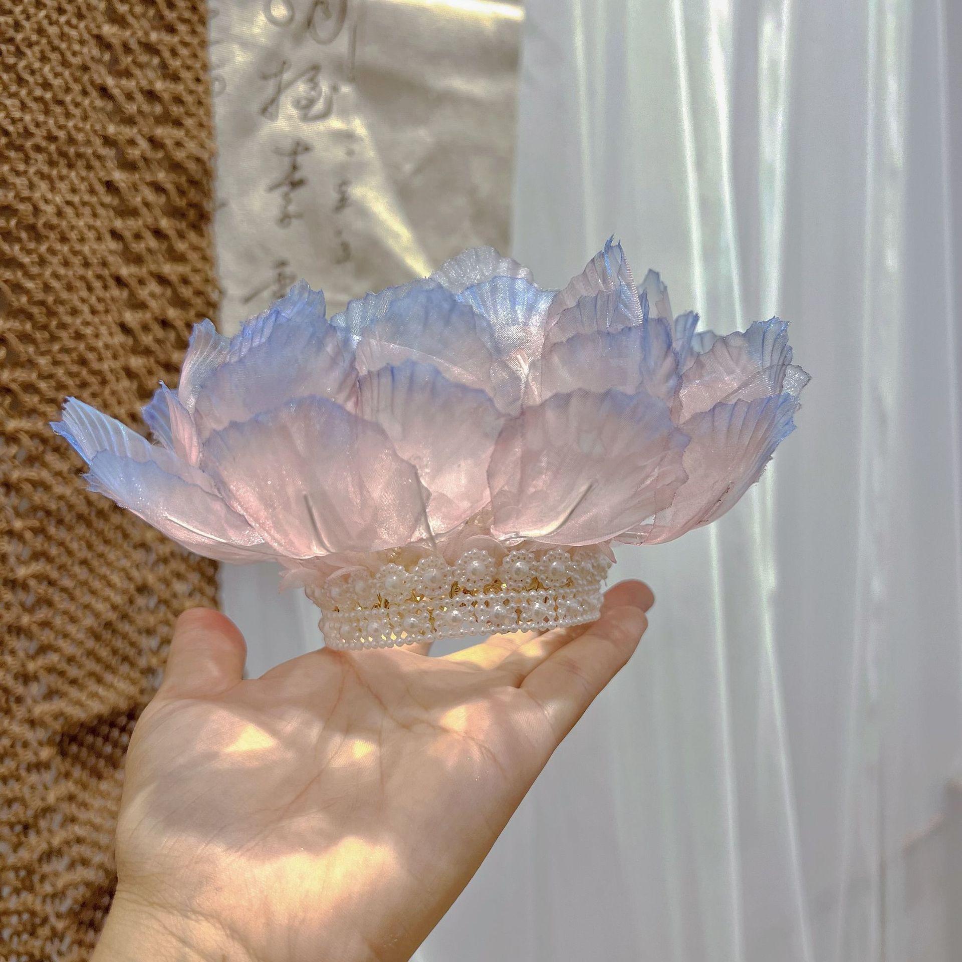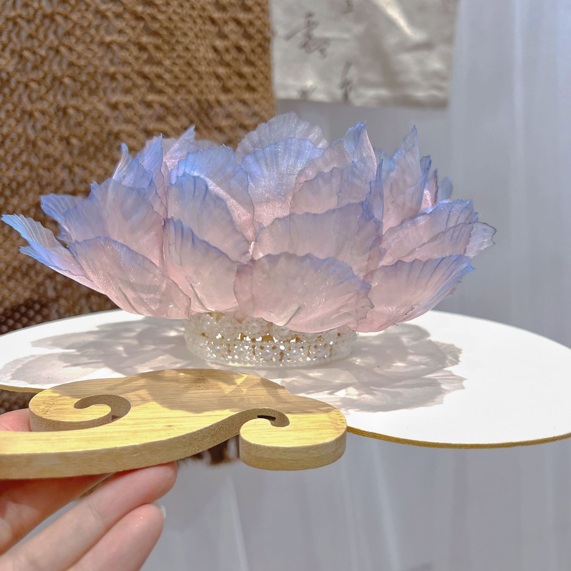 고대 스타일의 핫 플라워 연꽃 머리 왕관, 핑크와 블루의 한복 액세서리, 헤어 액세서리, 고대 스타일 당나라 스타일 요정 의상, 슈퍼 요정 국가 스타일 머리 장식