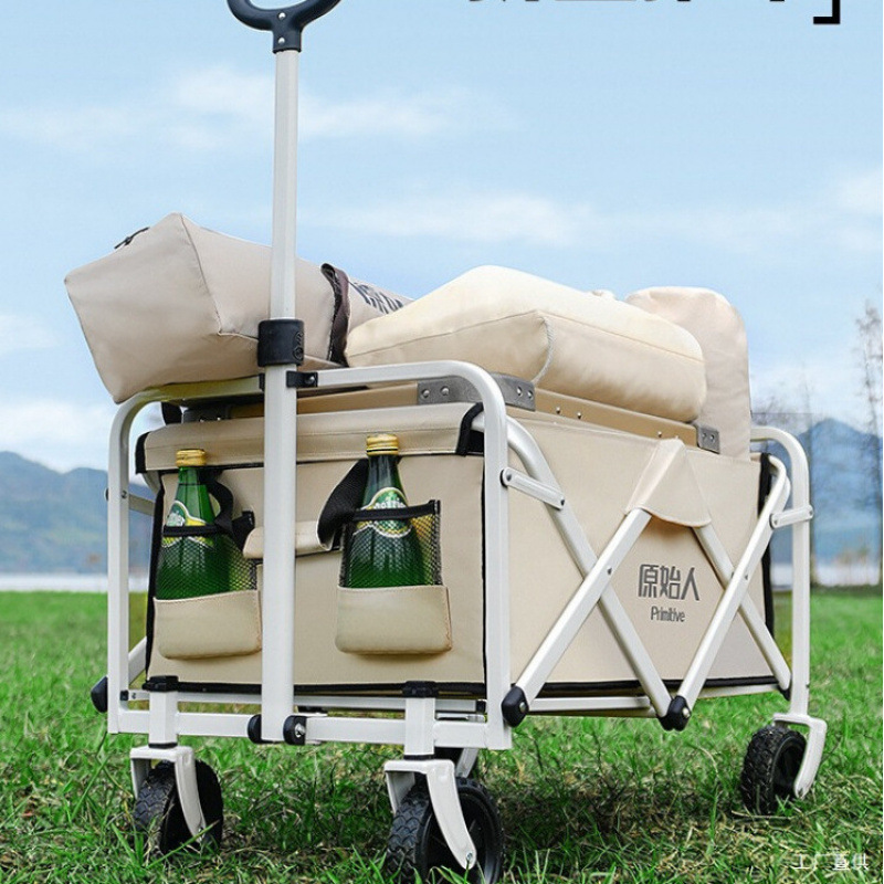 원시 캠핑 카트 야외 캠프 캠핑 핸드 푸시 접이식 피크닉 카트 소형 트레일러 트레일러 캠핑 도매스토어 가기