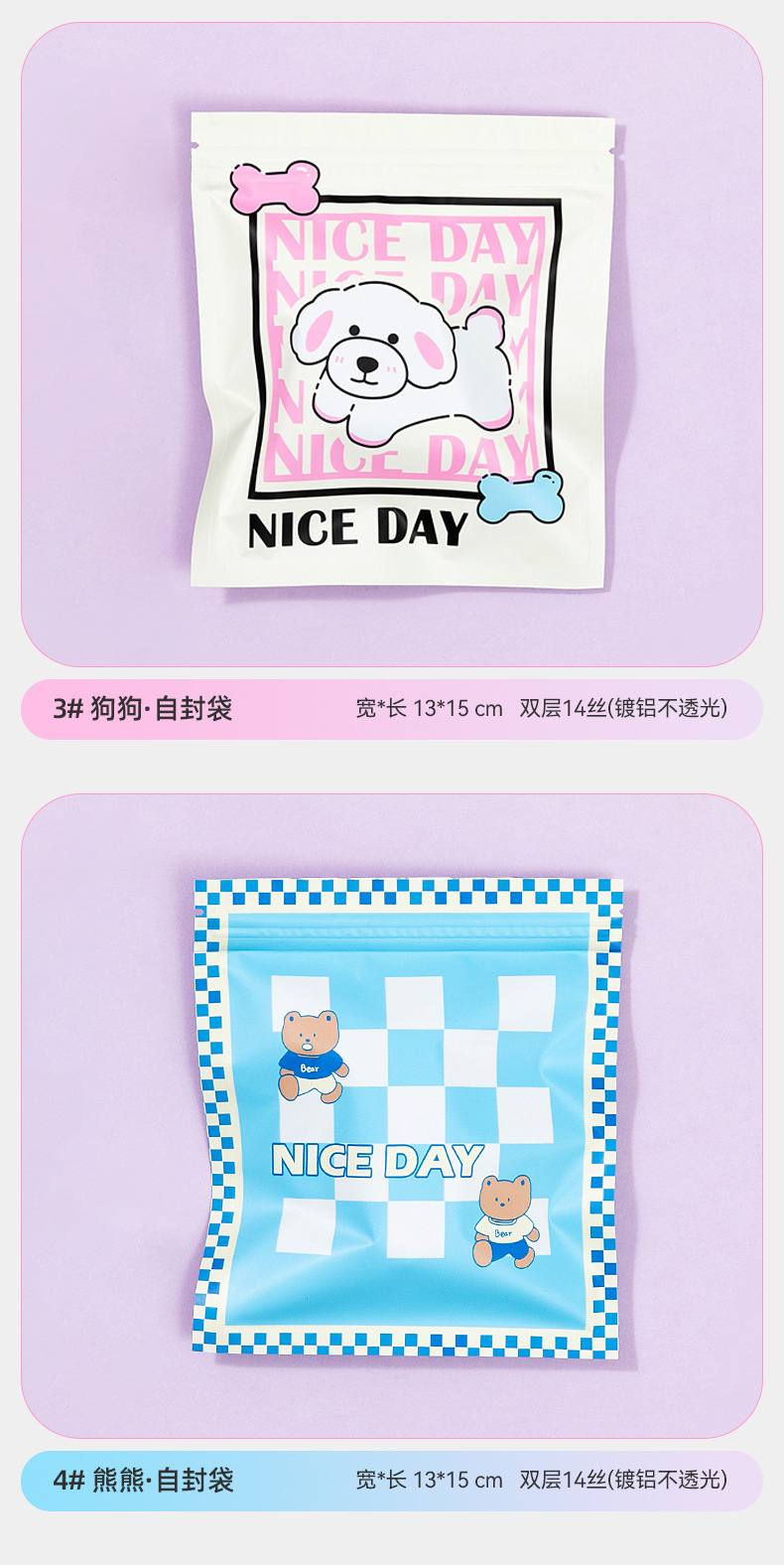 만화 귀여운 인형 손으로 만든 장난감 블라인드 박스 지퍼락 가방 젖빛 어린이 사탕 스낵 비스킷 액세서리 열 밀봉 가방스토어 가기