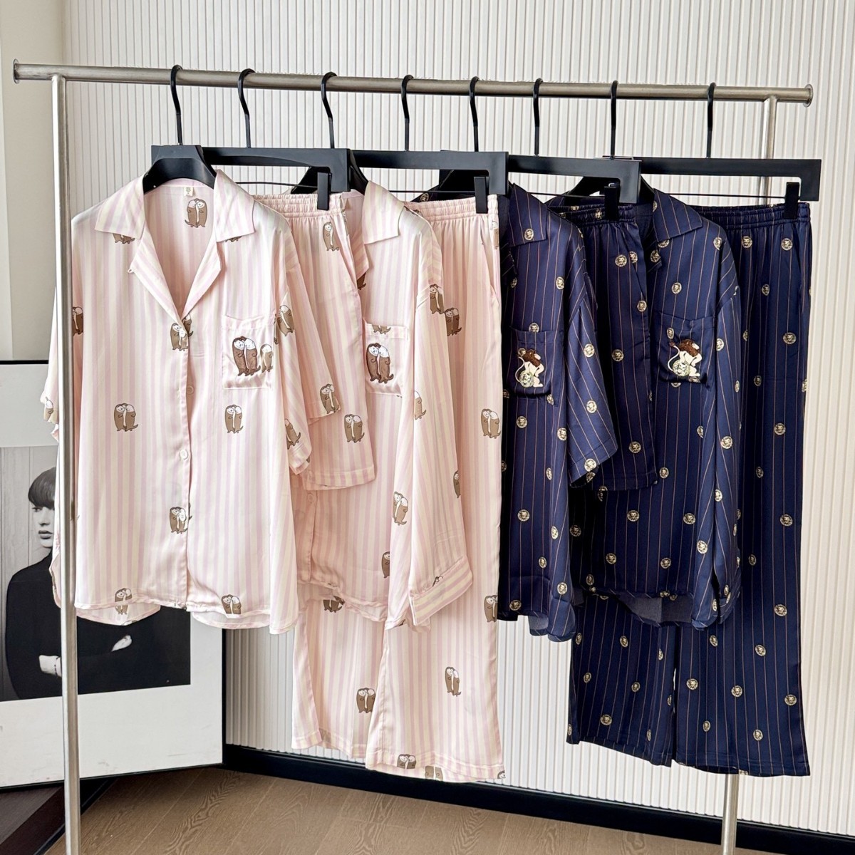 062404 여름 신작 여성 반팔 홈웨어 세트 남성 긴팔 잠옷 커플 홈웨어