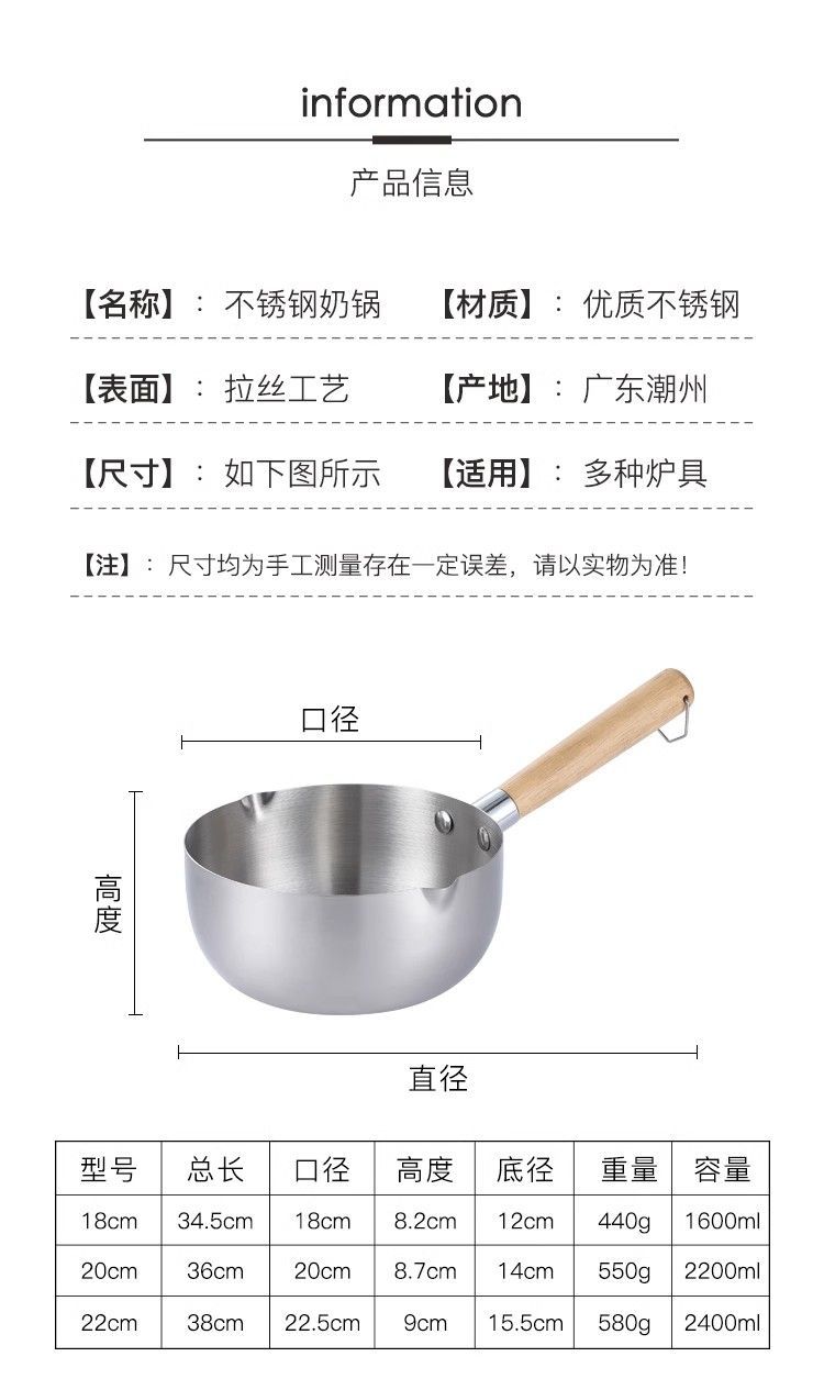 일본 스노우 플랫 냄비 일본 스테인레스 스틸 우유 냄비 가정용 우유 뜨거운 우유 인덕션 냄비 인스턴트 국수 냄비 작은 요리 냄비스토어 가기