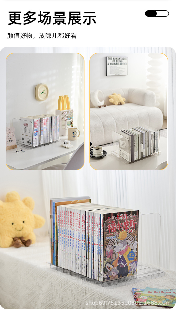 데스크탑 책장 아크릴 투명 학생 도서 책상 보관함 사무실 기숙사 파일 보관함스토어 가기