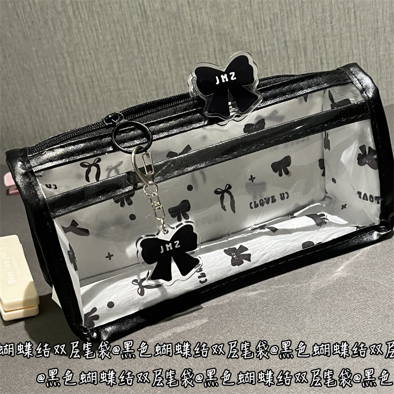 블랙 보우 더블 레이어 연필 가방 간단한 스타일의 고급스러운 소녀 하트 학생 문구 투명 보관 가방스토어 가기