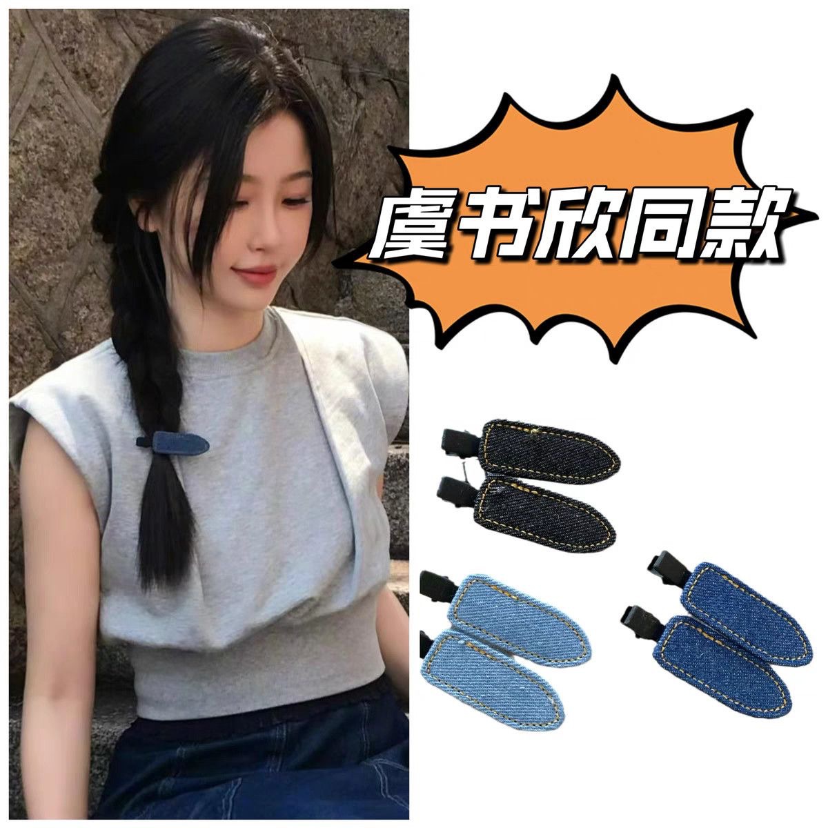 인터넷 연예인 같은 스타일의 블루 데님 심리스 헤어 클립, 패셔너블하고 심플한 앞머리 클립, 사이드 클립, 헤어 액세서리스토어 가기