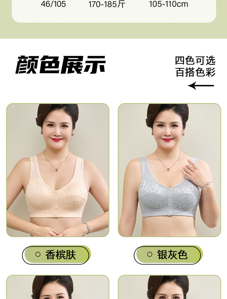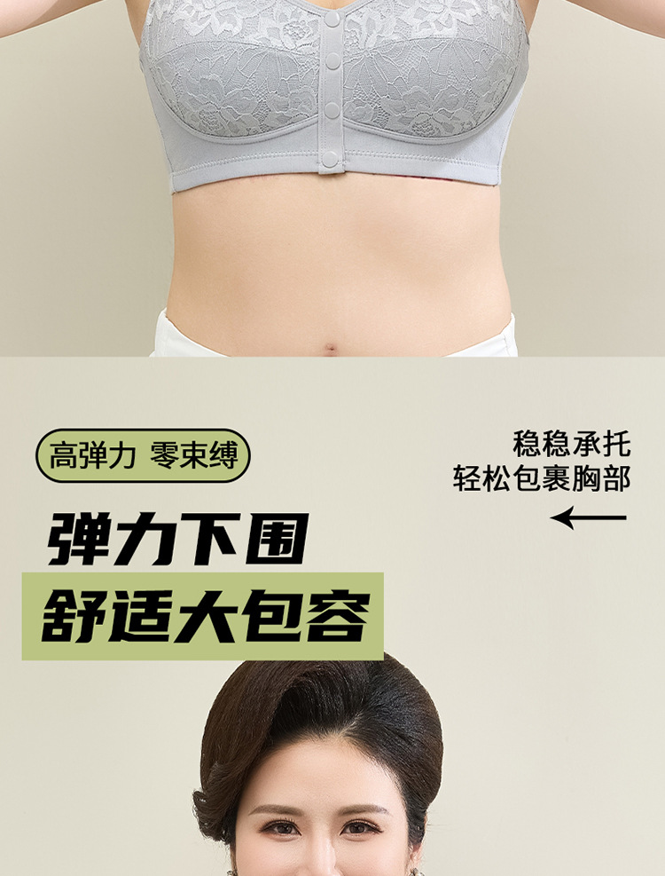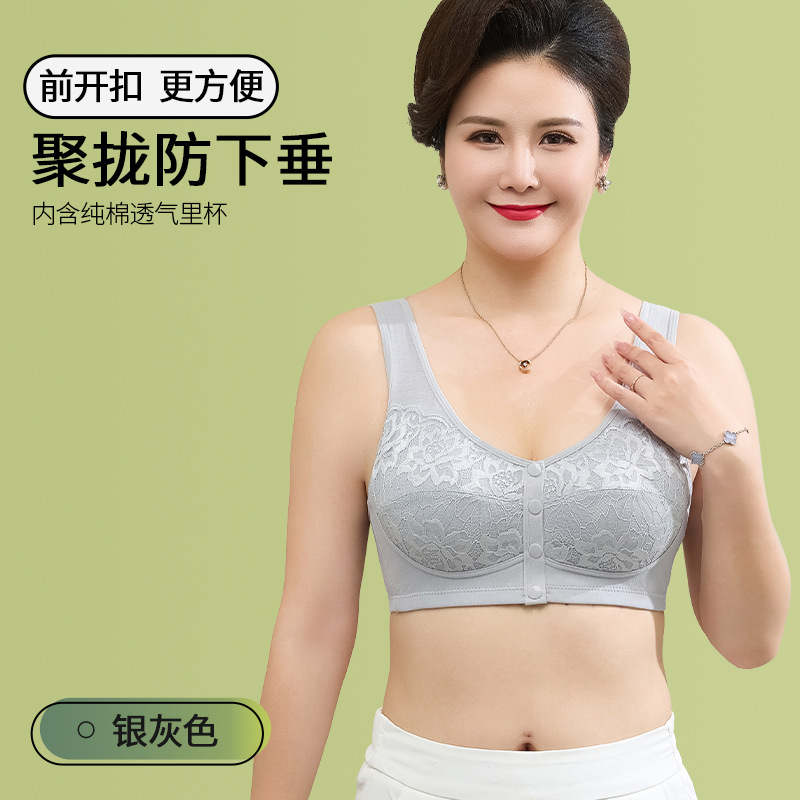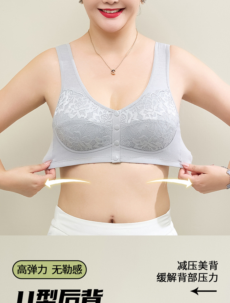 새로운 스타일의 앞면 버클 레이스 와이어 프리 여성용 브래지어 엄마 스포츠 브래지어 중년 및 노인 편안한 통기성 브래지어스토어 가기