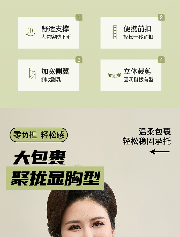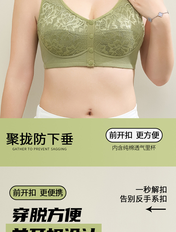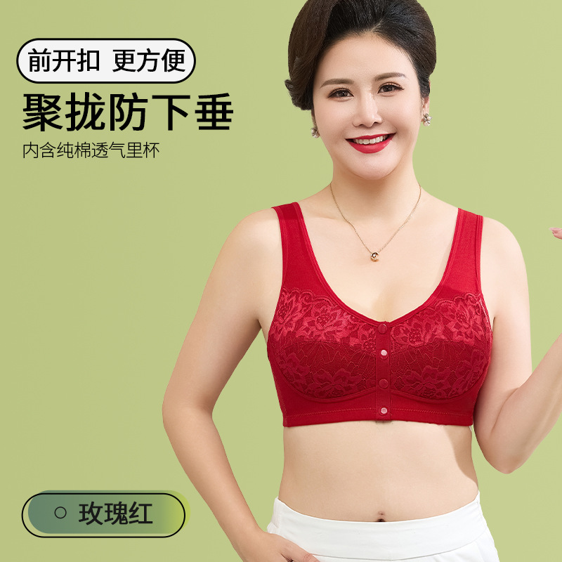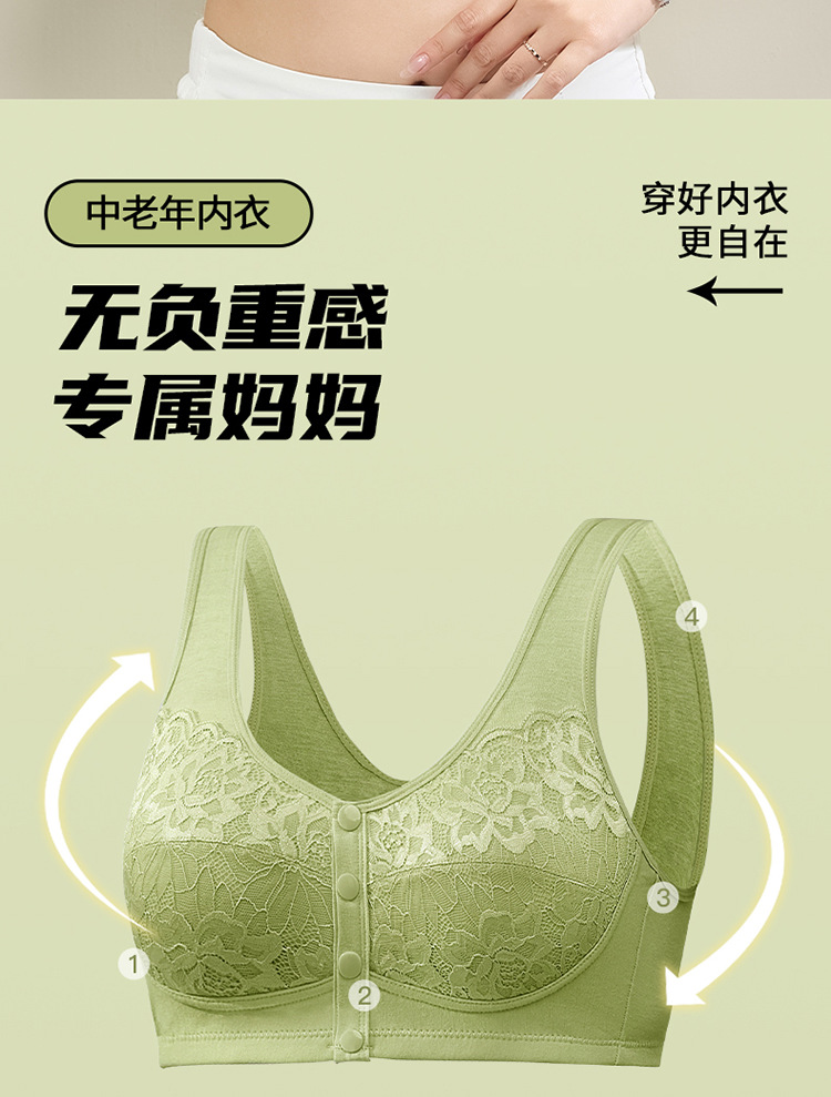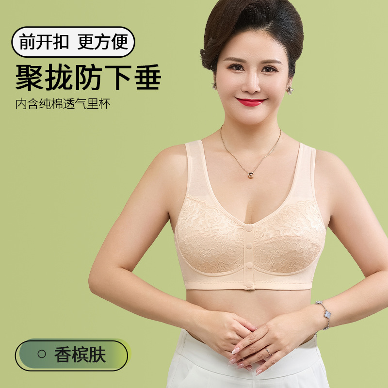 새로운 스타일의 앞면 버클 레이스 와이어 프리 여성용 브래지어 엄마 스포츠 브래지어 중년 및 노인 편안한 통기성 브래지어스토어 가기