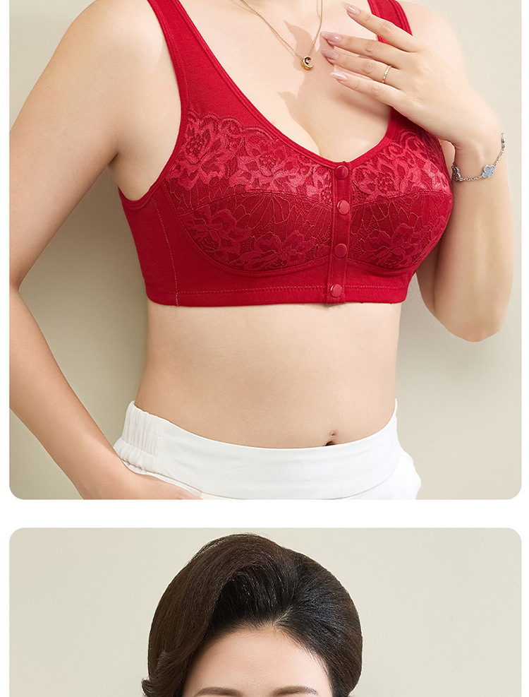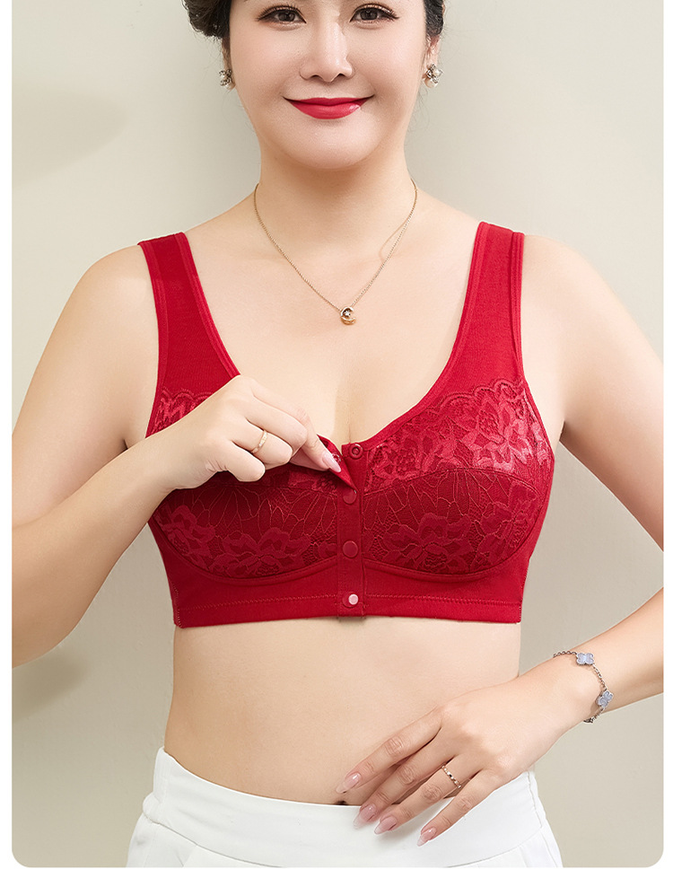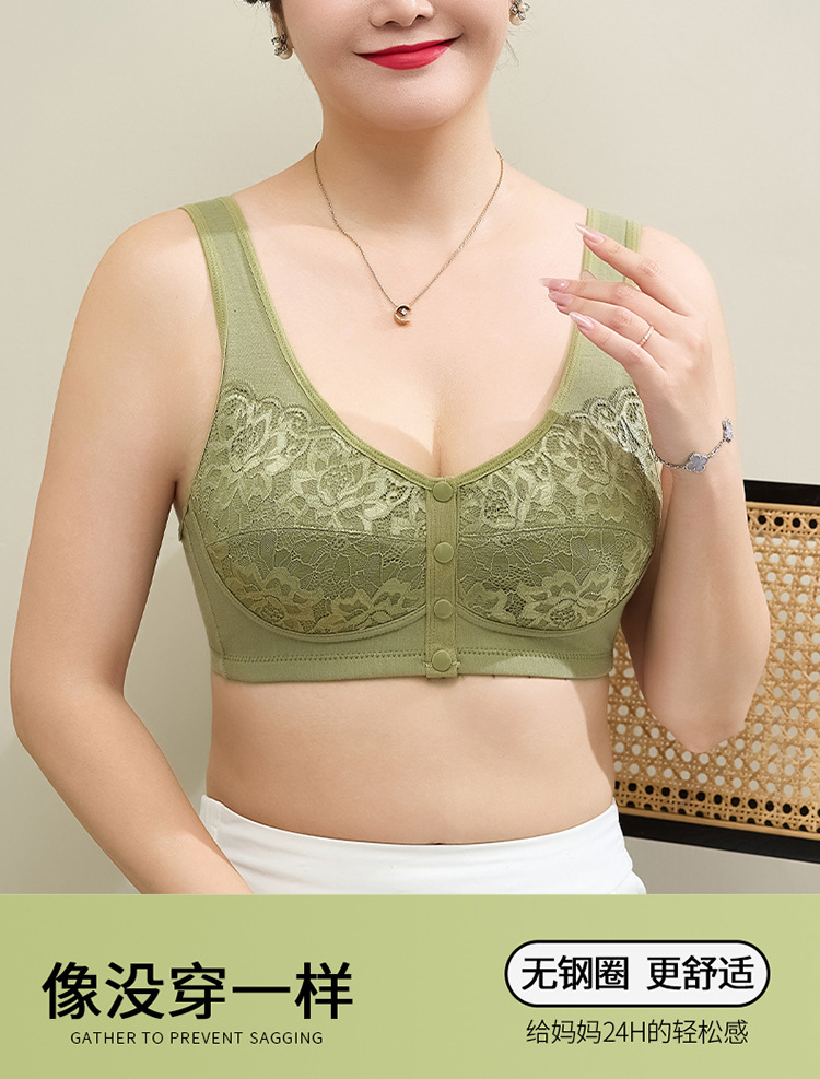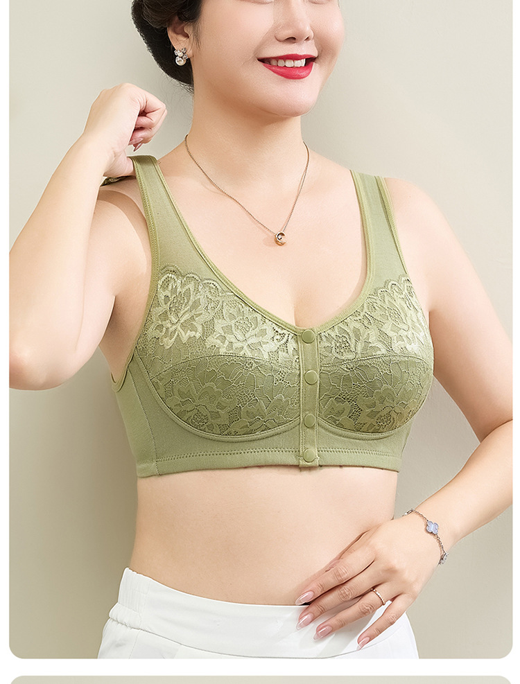 새로운 스타일의 앞면 버클 레이스 와이어 프리 여성용 브래지어 엄마 스포츠 브래지어 중년 및 노인 편안한 통기성 브래지어