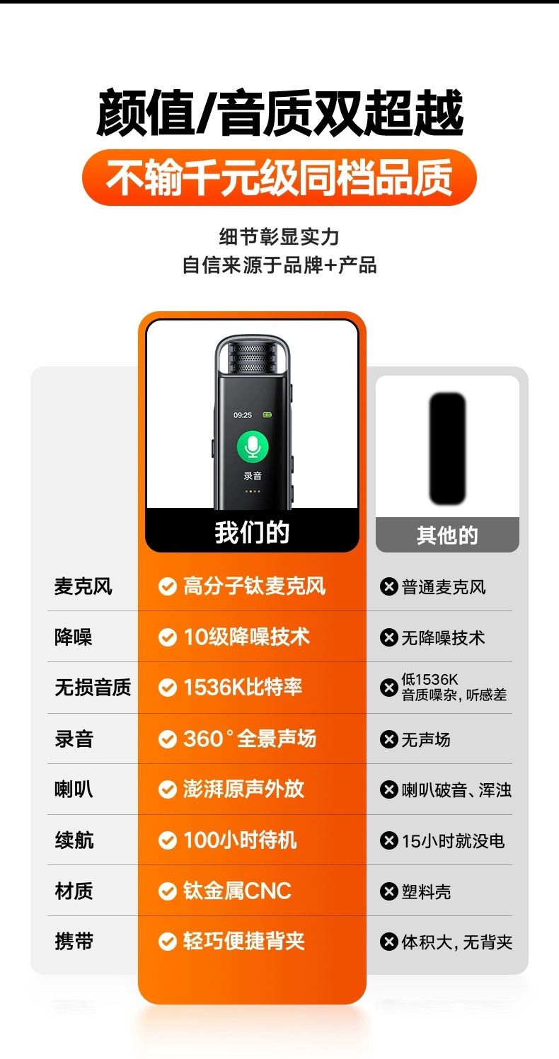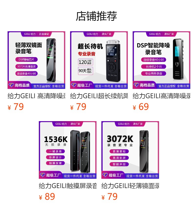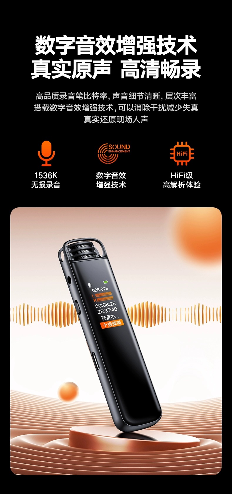 给力GEILI智能AI录音笔高清降噪超长续航打人了会议演唱会专用录音器