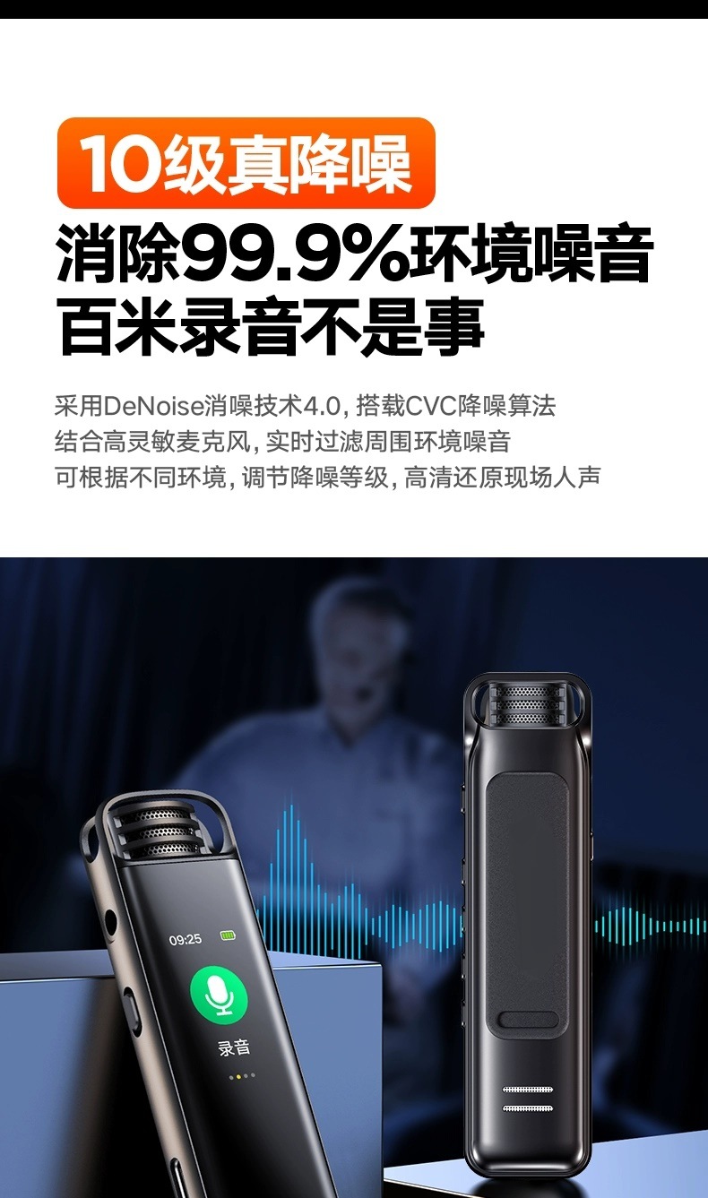 지능형 AI 고화질 소음 감소 녹음기, 매우 긴 배터리 수명, 대용량 휴대용 회의 및 콘서트 녹음기스토어 가기