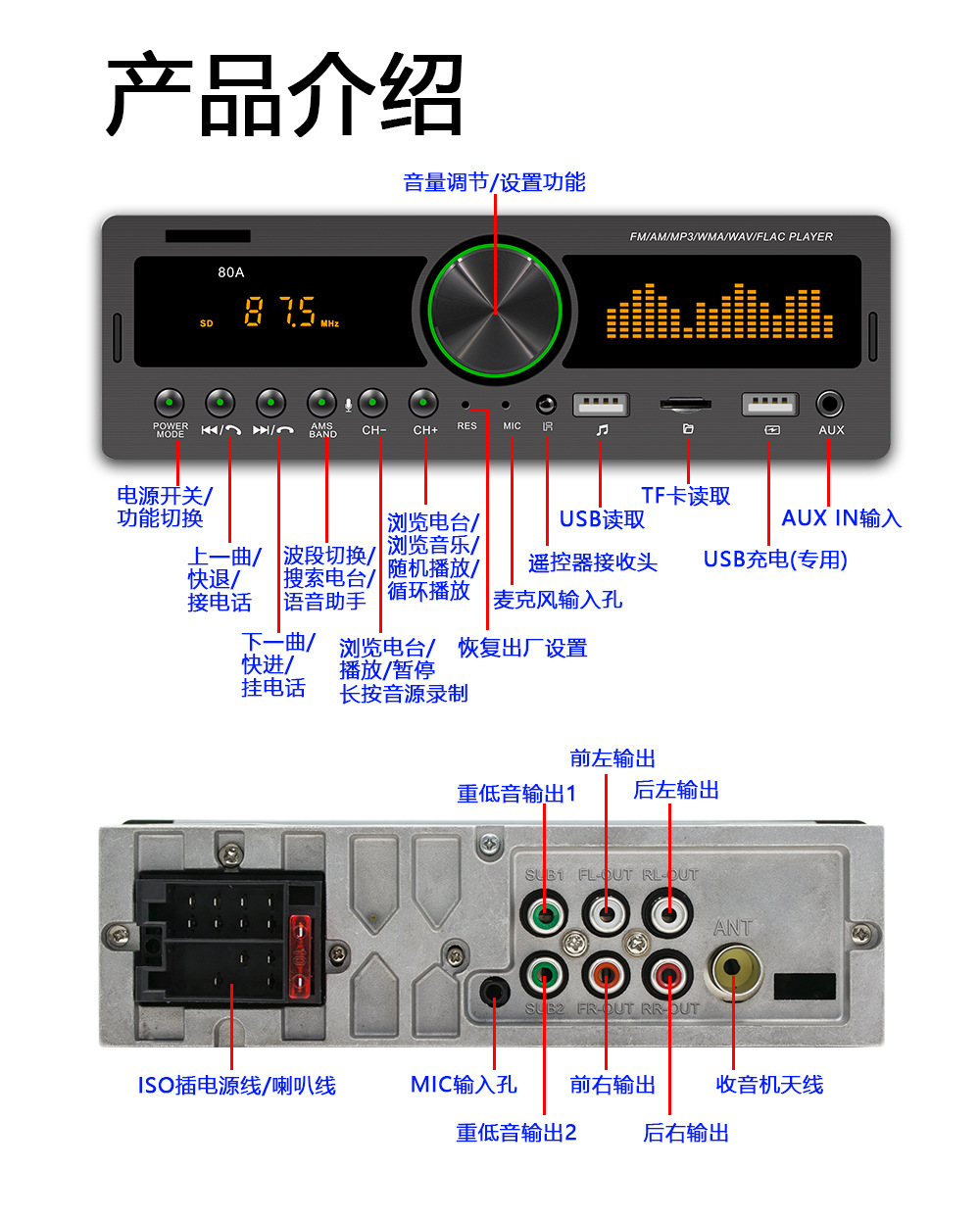 새로운 자동차 U 디스크 플러그인 트럭 블루투스 mp3 플레이어 TF 카드 FM 라디오 무손실 음악 플레이어