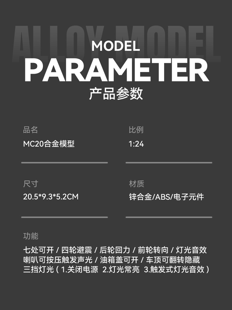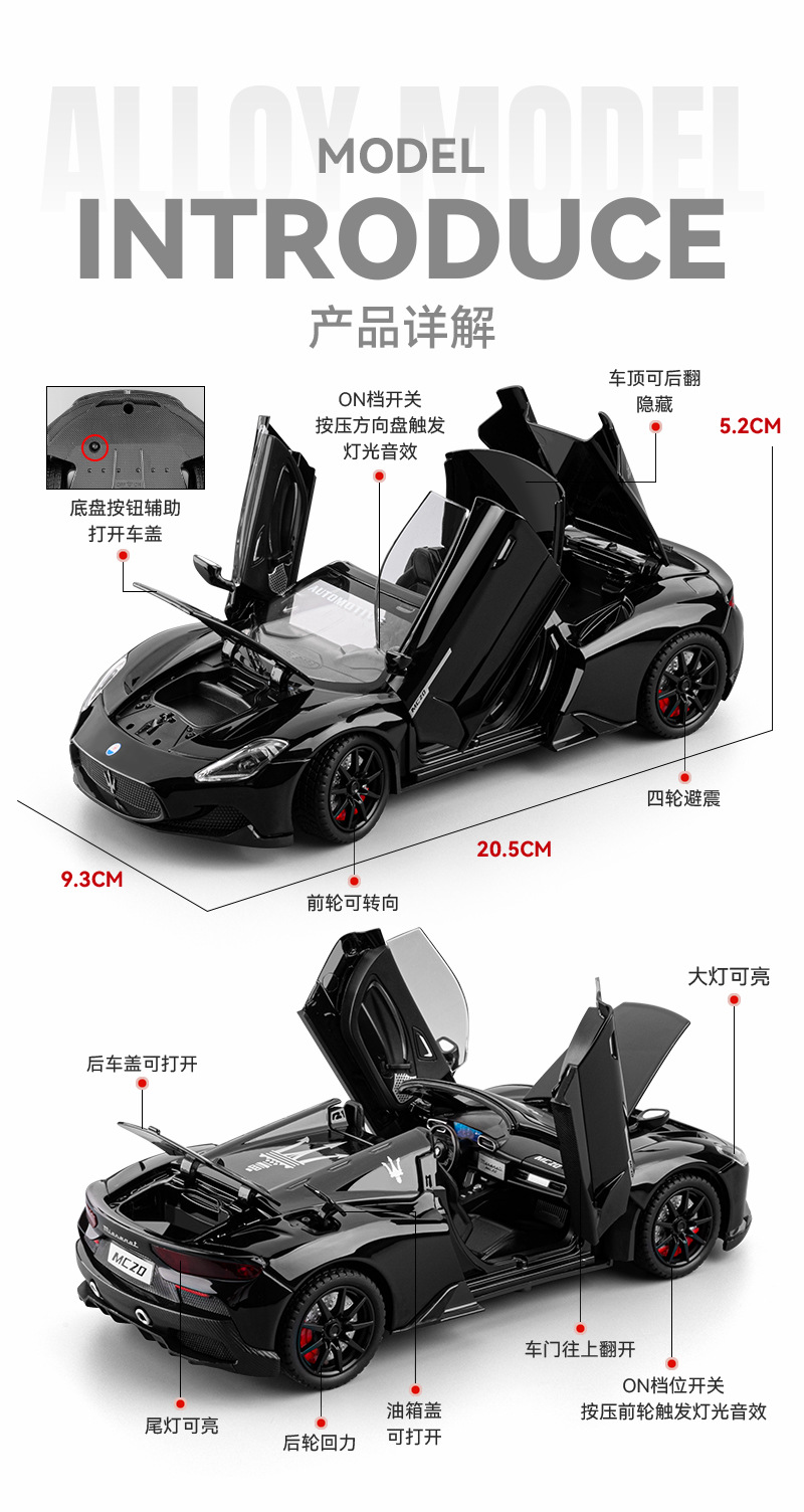 Chezhi 241012 박스형 Martha M20 스포츠카 1/24 시뮬레이션 어린이 소리와 빛 풀백 합금 자동차 모델 장난감