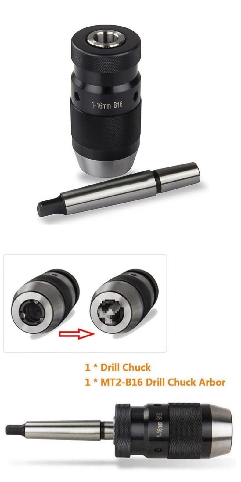 MT2-B16 드릴링 로드(1-16 B16 자체 조임 드릴링 척 포함) 손잡이가 있는 일체형 드릴링 척 MS2/MK2스토어 가기