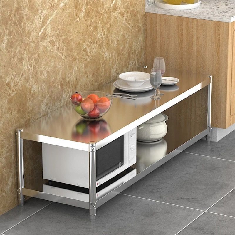 주방 스테인레스 스틸 2층 선반 바닥 2층 전자 레인지 보관 랙 오븐 정리 다층