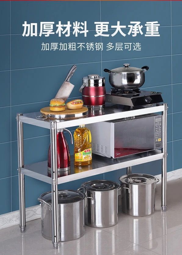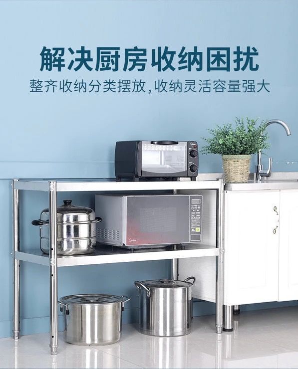 주방 스테인레스 스틸 2층 선반 바닥 2층 전자 레인지 보관 랙 오븐 정리 다층스토어 가기