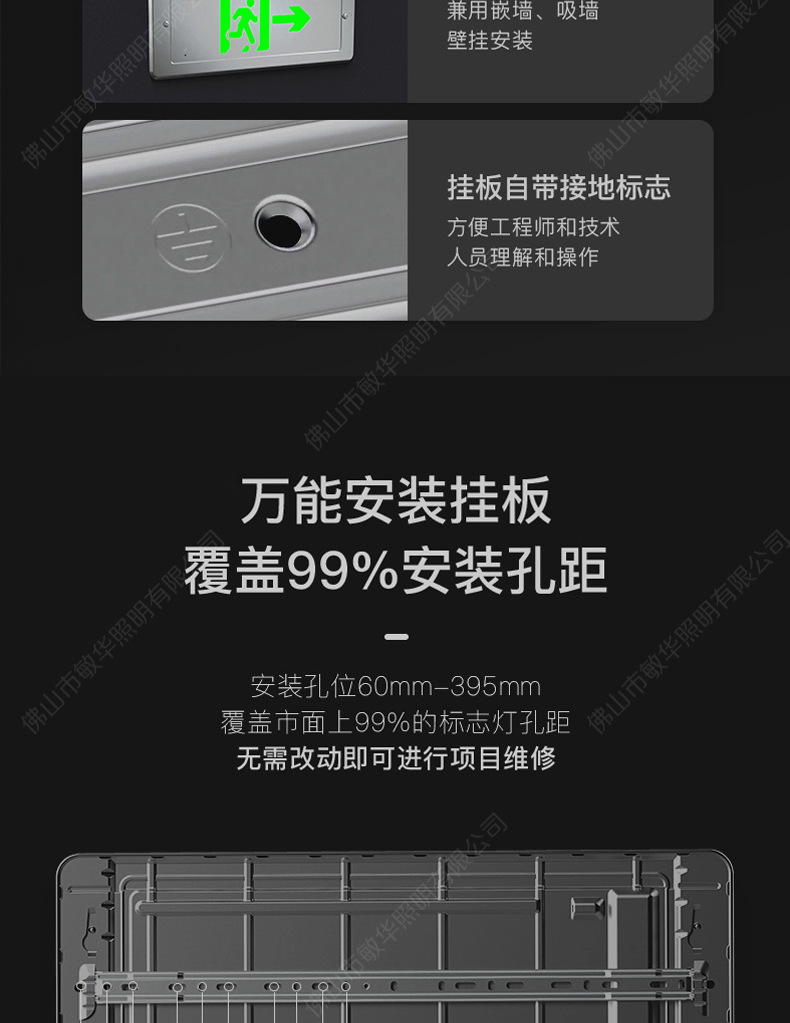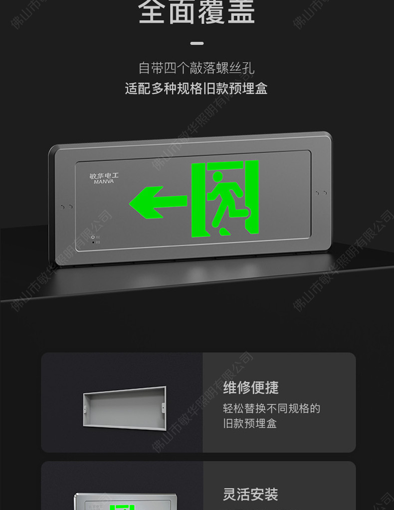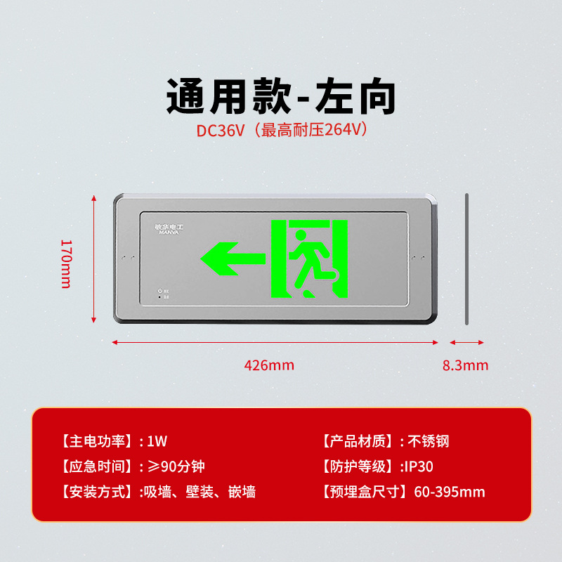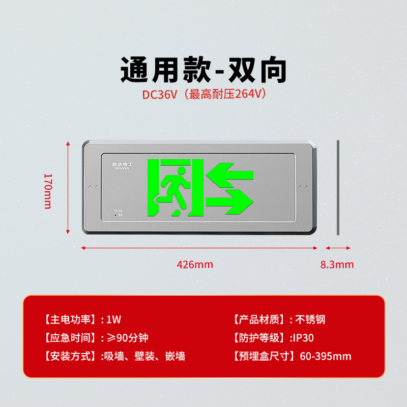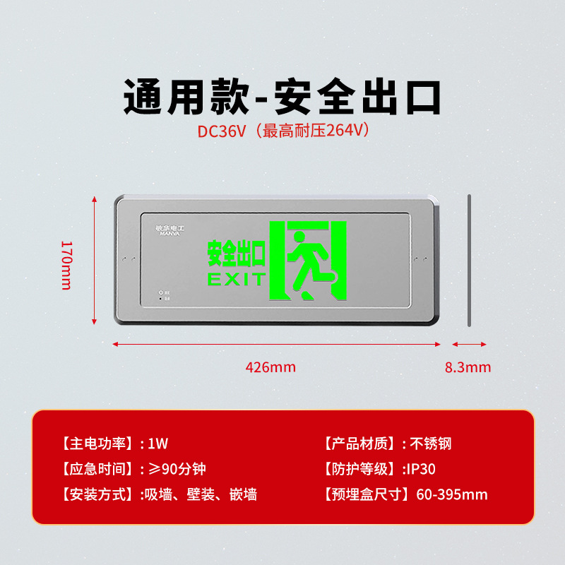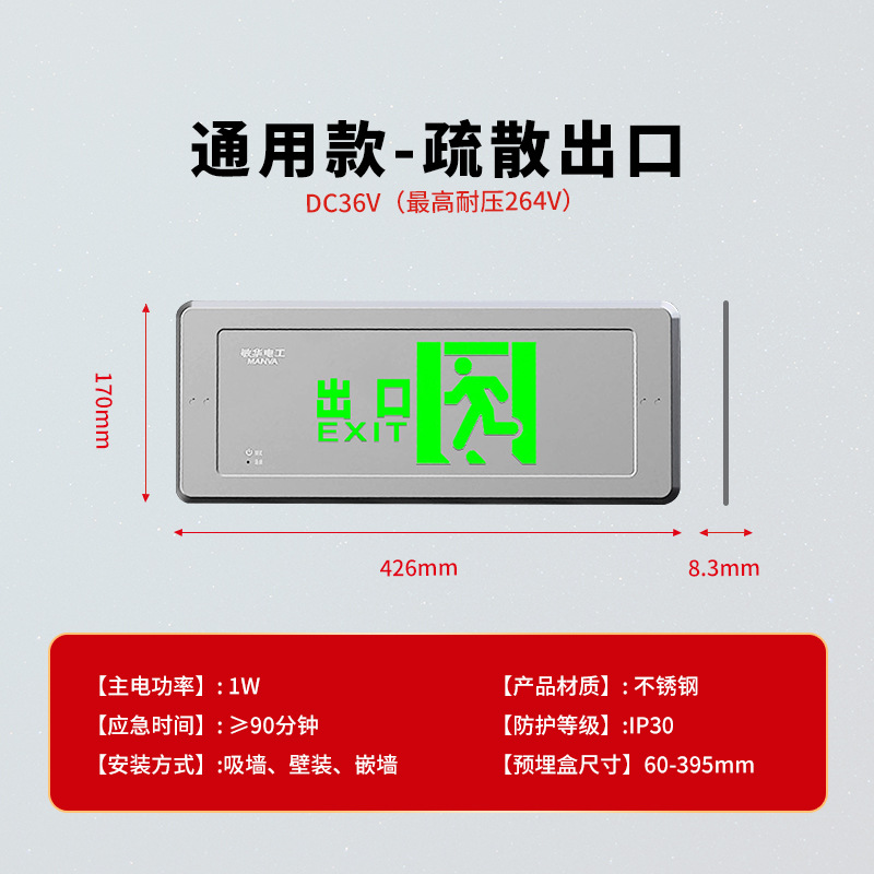 민화 스테인리스 안전 출구 표시등 대피 표지판 고저압 겸용 무타공 비상 표지등