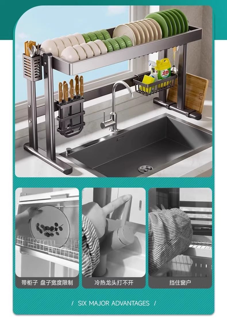 주방 싱크대 수납선반, 싱크대 위 식기세척대, 식기수납대, 다기능 식기선반