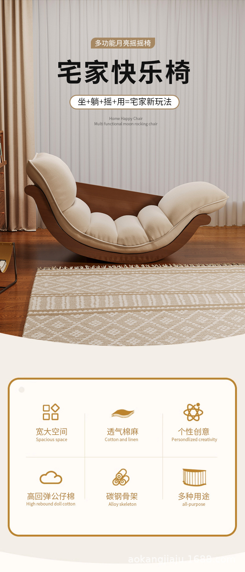 바나나 보트 홈 흔들 의자 다기능 게으른 소파 단단한 나무 발코니 레저 의자 작은 아파트 성인 낮잠 안락 의자