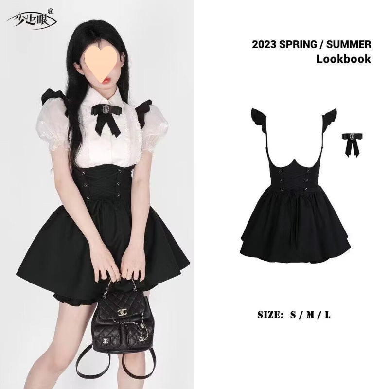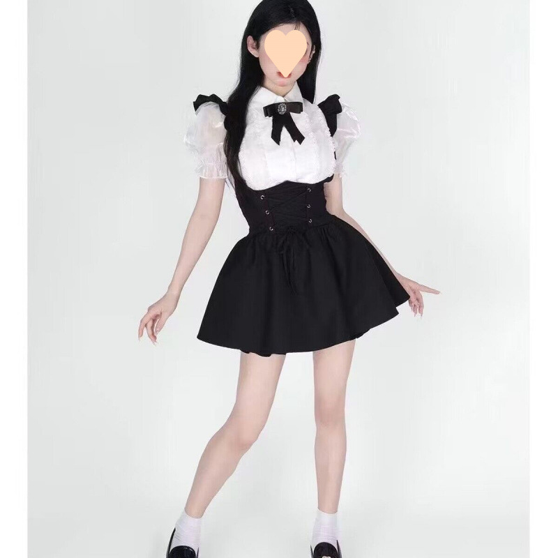 • 58 # 화이트 셔츠 + 서스펜더 스커트 [보석 나비넥타이 무료]
