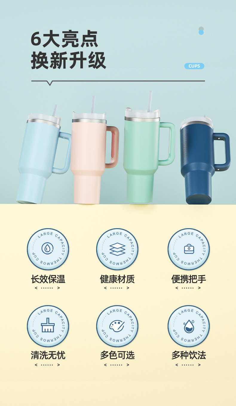 도매 국경 간 자동차 컵 40oz 핸들 자동차 보온병 컵 스테인레스 스틸 용량 콜드 스틱 아이스 컵스토어 가기