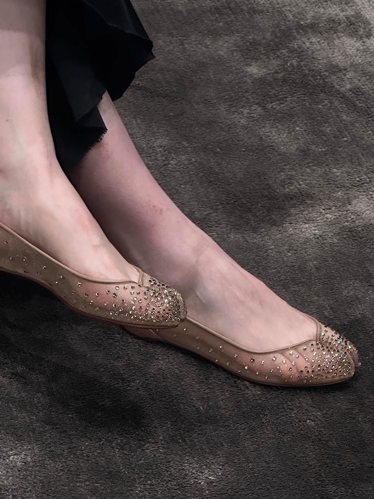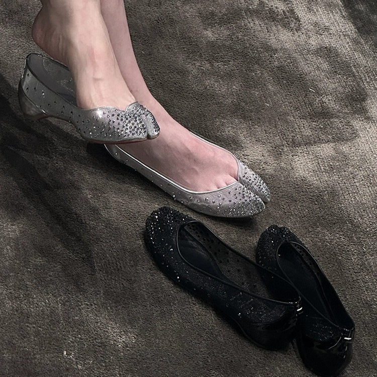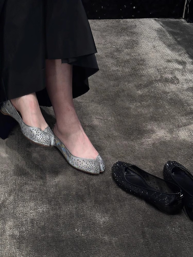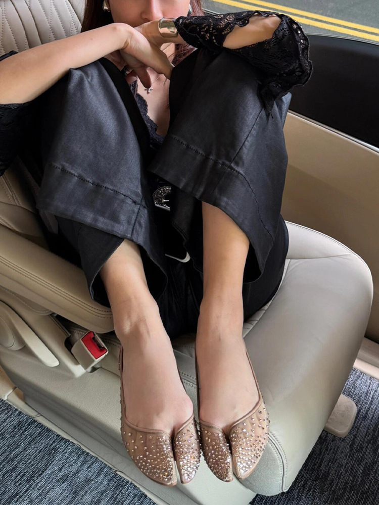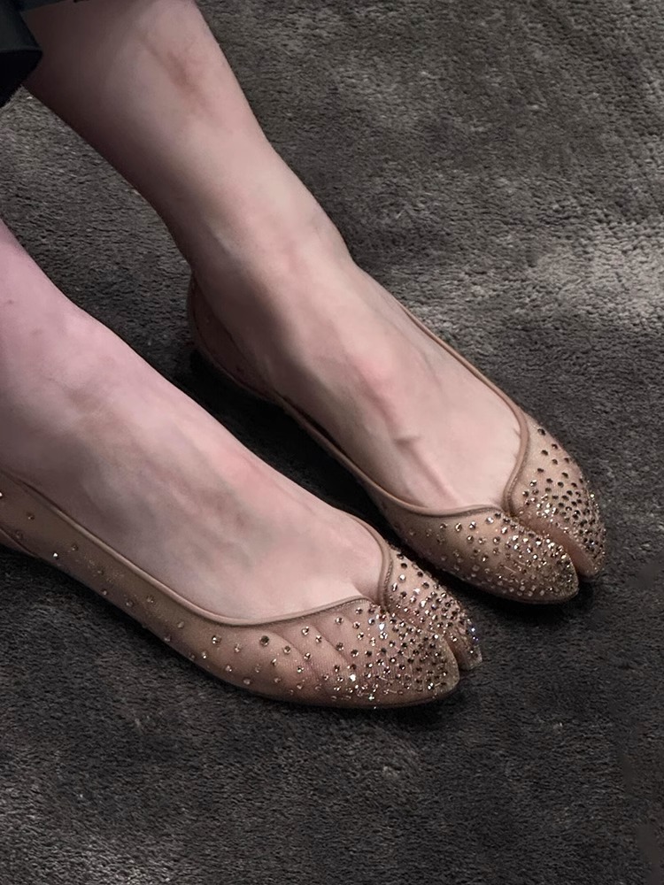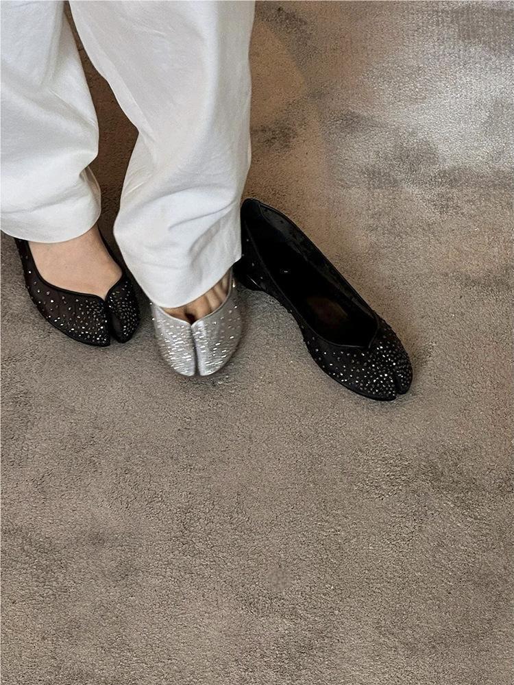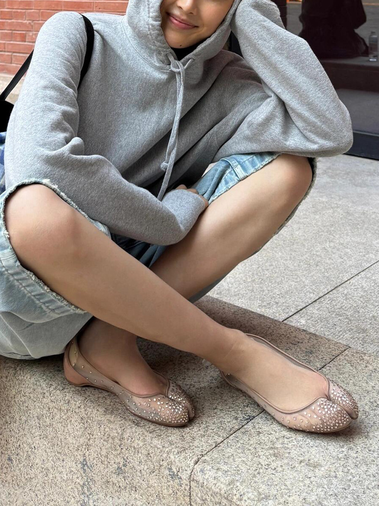 Su Yinyin과 동일한 조인트 모델 ~ 레드 바닥 타비 메쉬 라인스톤 이너 하이탑 슈즈 여성 여름용 돼지발톱 슈즈스토어 가기