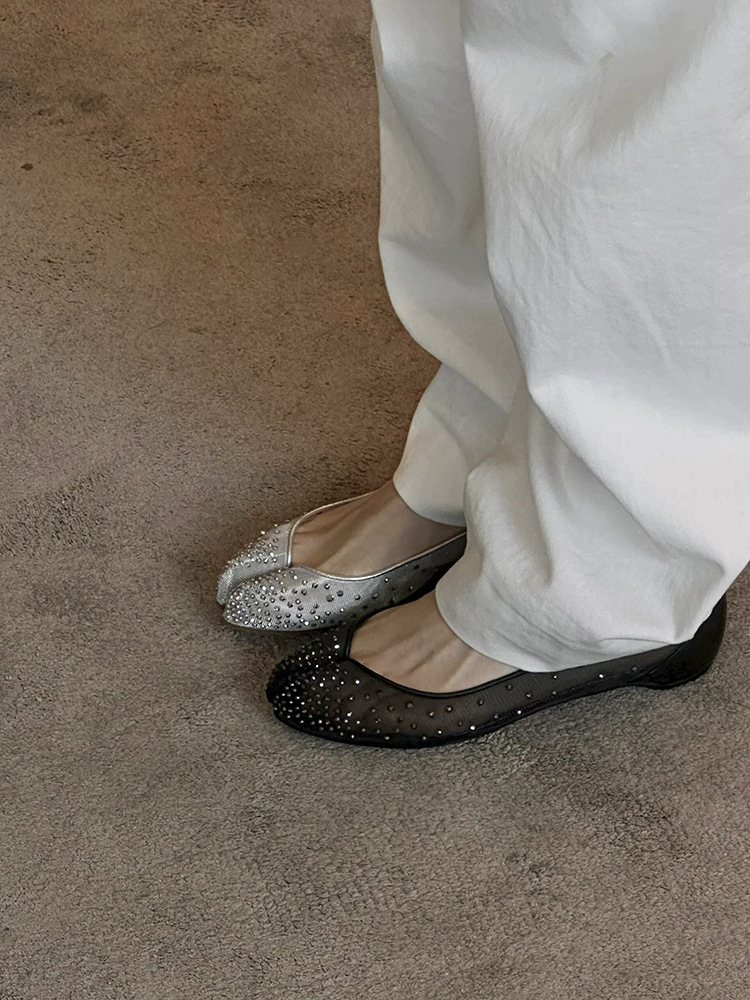 Su Yinyin과 동일한 조인트 모델 ~ 레드 바닥 타비 메쉬 라인스톤 이너 하이탑 슈즈 여성 여름용 돼지발톱 슈즈