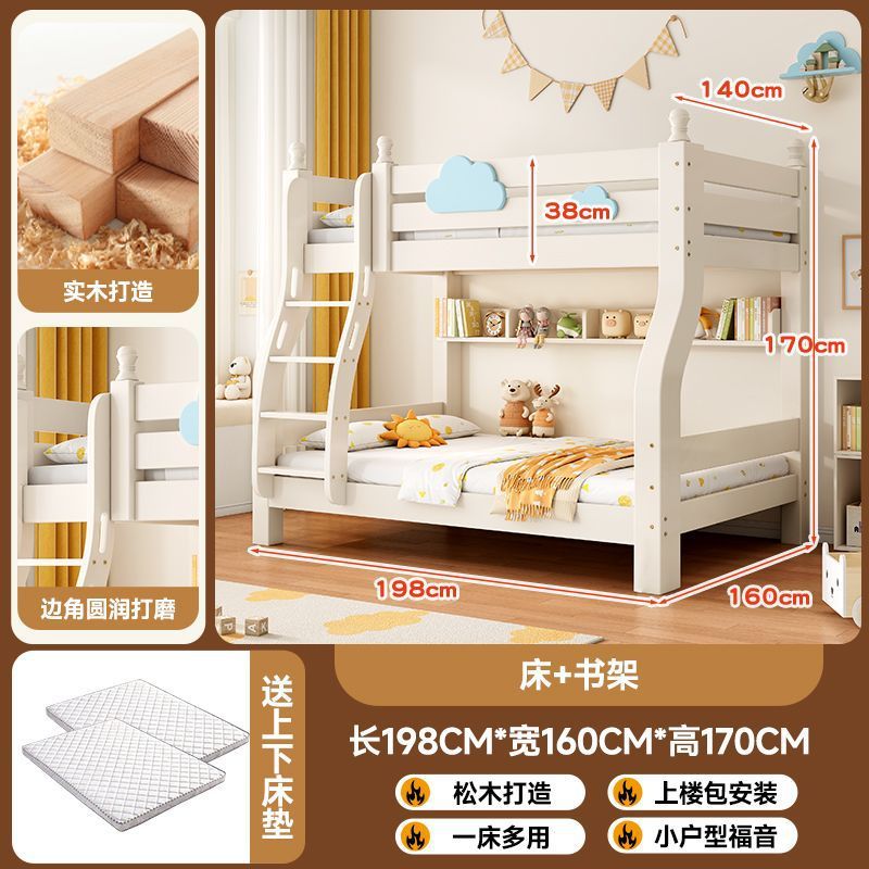 이층침대, 이층침대, 원목 하이앤로우 침대, 성인용 다기능 소형 아동용 침대, 이층침대, 원목 침대, 이층침대
