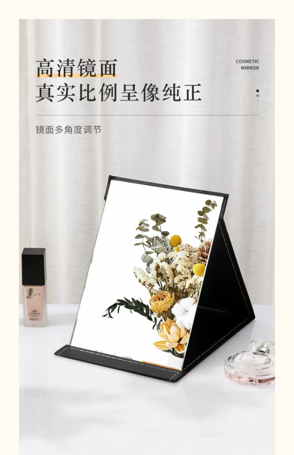 접이식 화장 거울 HD 휴대용 PU 화장 거울 작은 데스크탑 데스크탑 사무실 학생 기숙사 화장 거울 휴대용스토어 가기