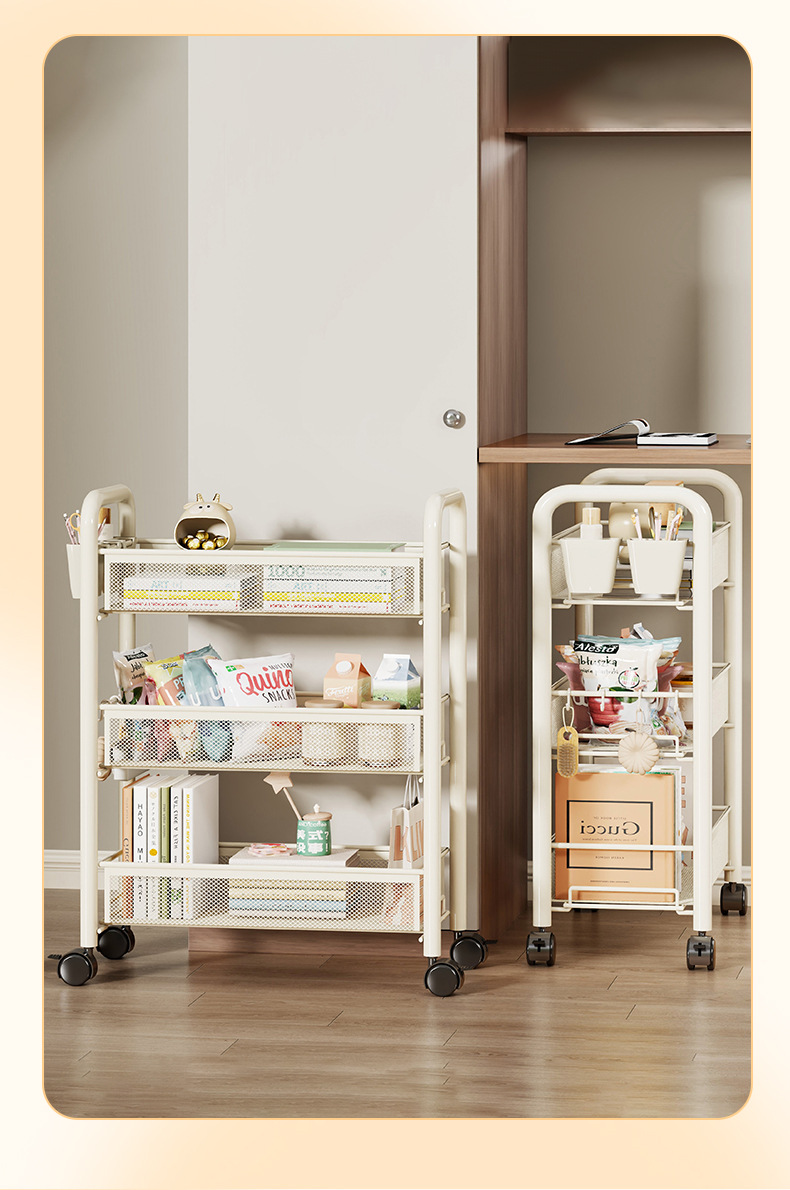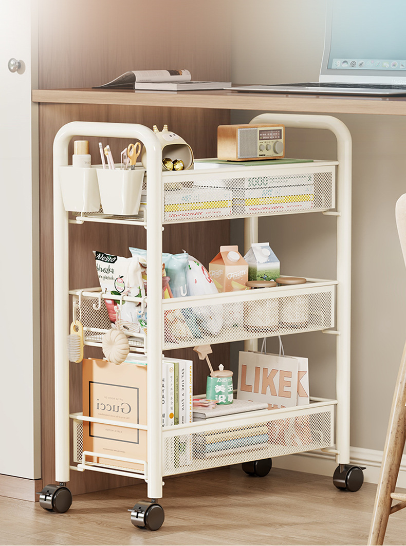 기숙사 트롤리 보관함, 침실 책상 아래 작은 책장, 바퀴가 달린 이동식 간식 다층 슬롯 보관 캐비닛스토어 가기