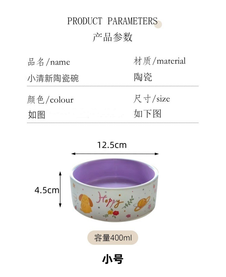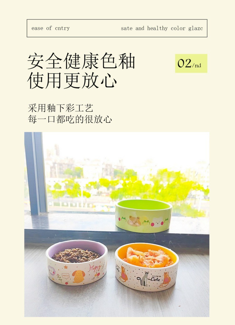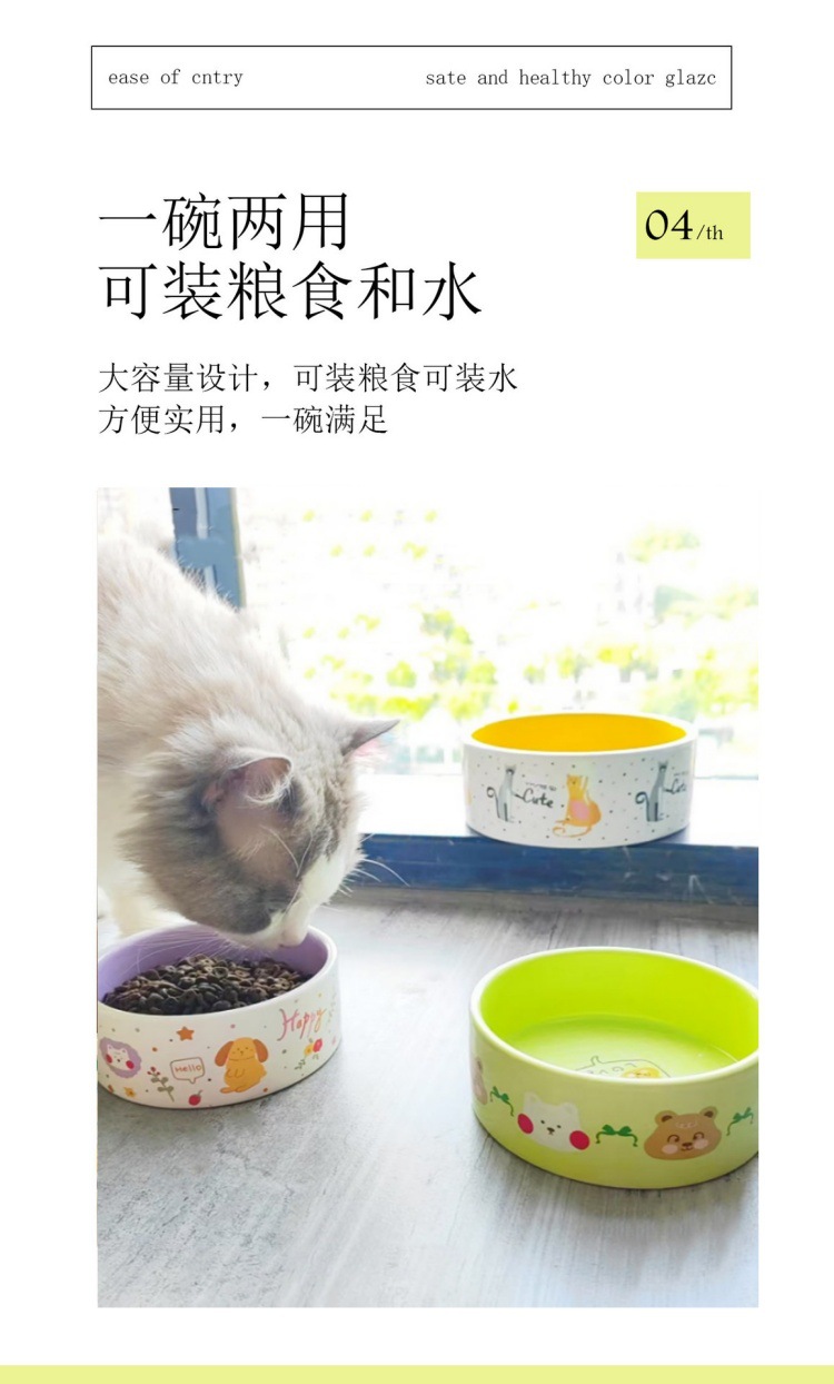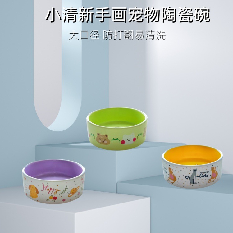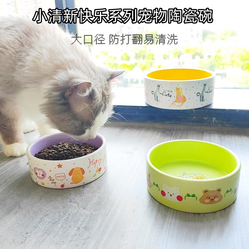 새로운 애완 동물 세라믹 그릇, 작은 신선한 낙서 고양이 그릇, 개 그릇, 대구경, 청소가 쉽고 뒤집힘 방지, 재고 있음 도매스토어 가기