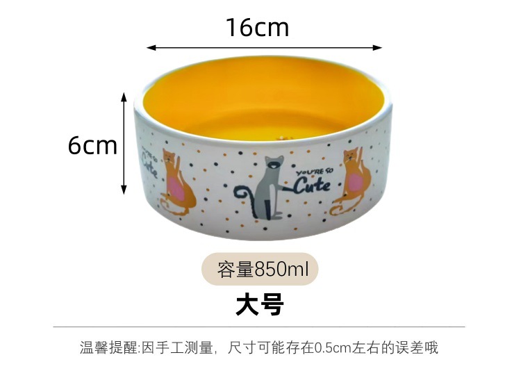 새로운 애완 동물 세라믹 그릇, 작은 신선한 낙서 고양이 그릇, 개 그릇, 대구경, 청소가 쉽고 뒤집힘 방지, 재고 있음 도매