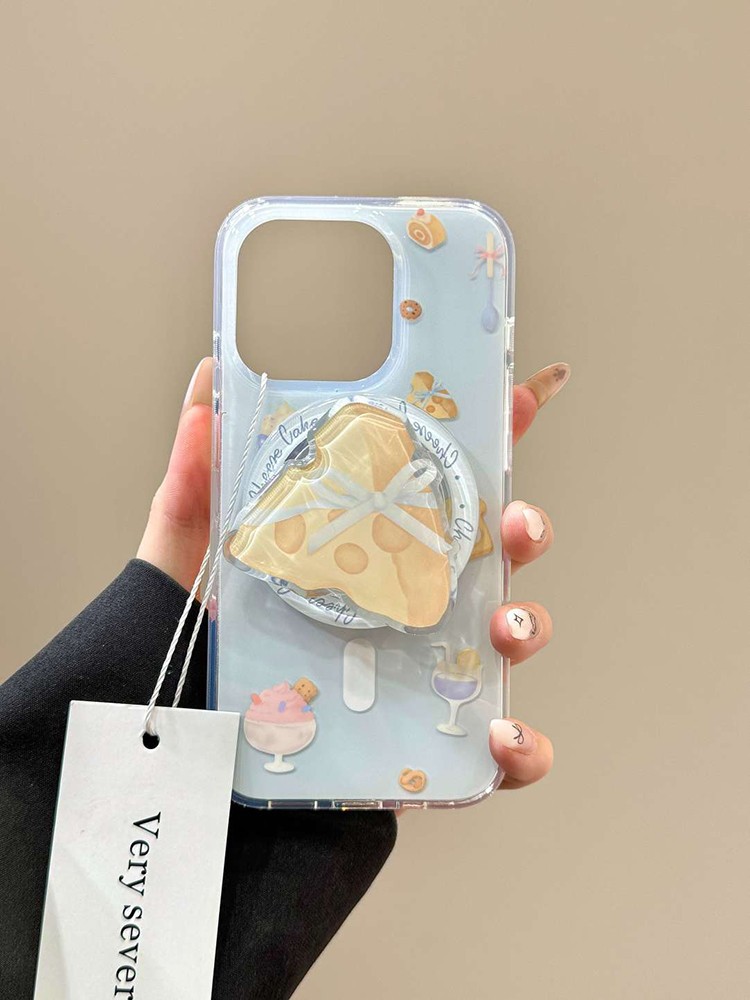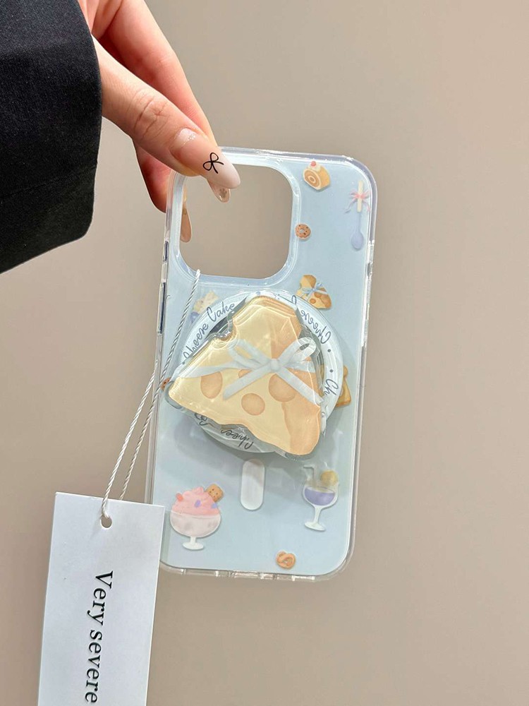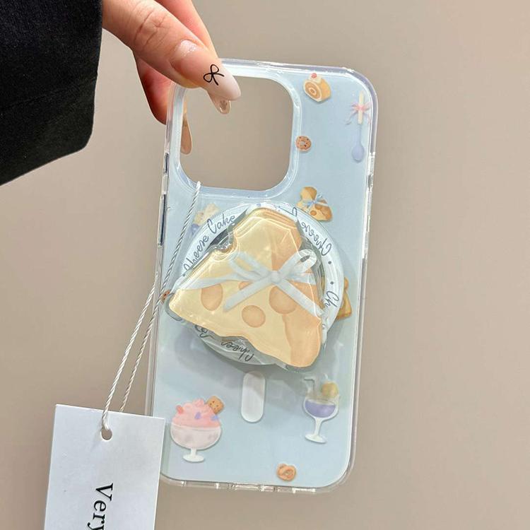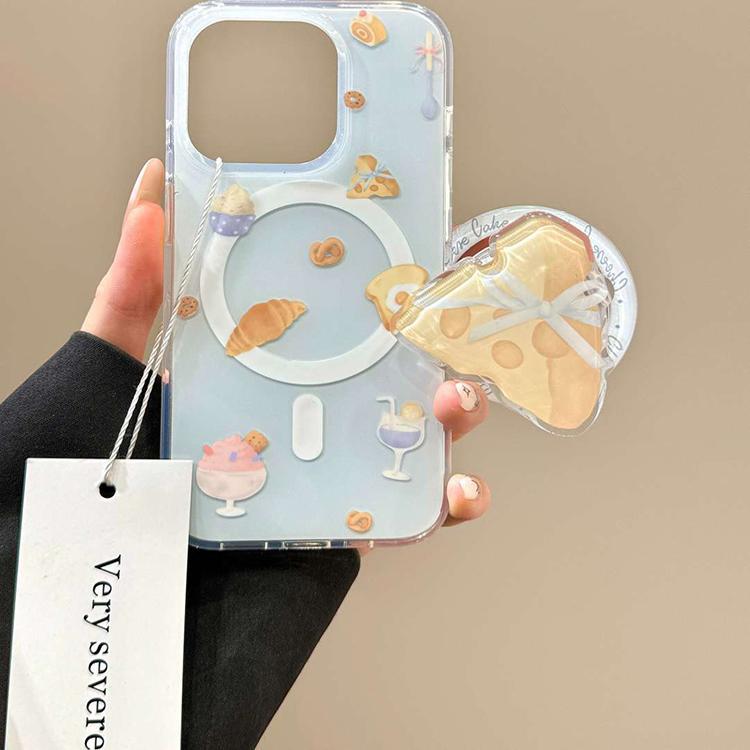 IMD 대형 자석 흡착 인스 스타일 연한 파란색 만화 디자인 아이폰17 휴대폰 케이스 크루아상 치즈 자석 흡착 스탠드