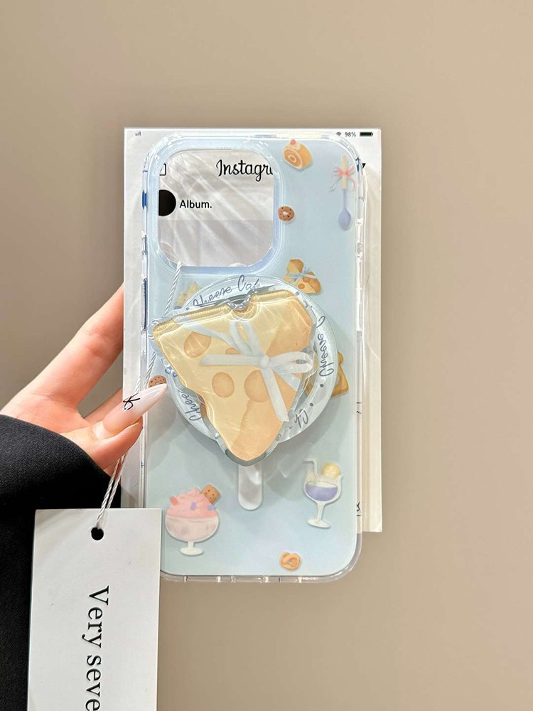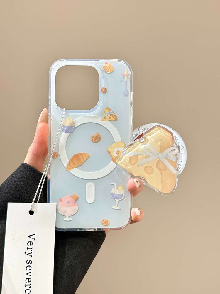IMD 대형 자석 흡착 인스 스타일 연한 파란색 만화 디자인 아이폰17 휴대폰 케이스 크루아상 치즈 자석 흡착 스탠드스토어 가기