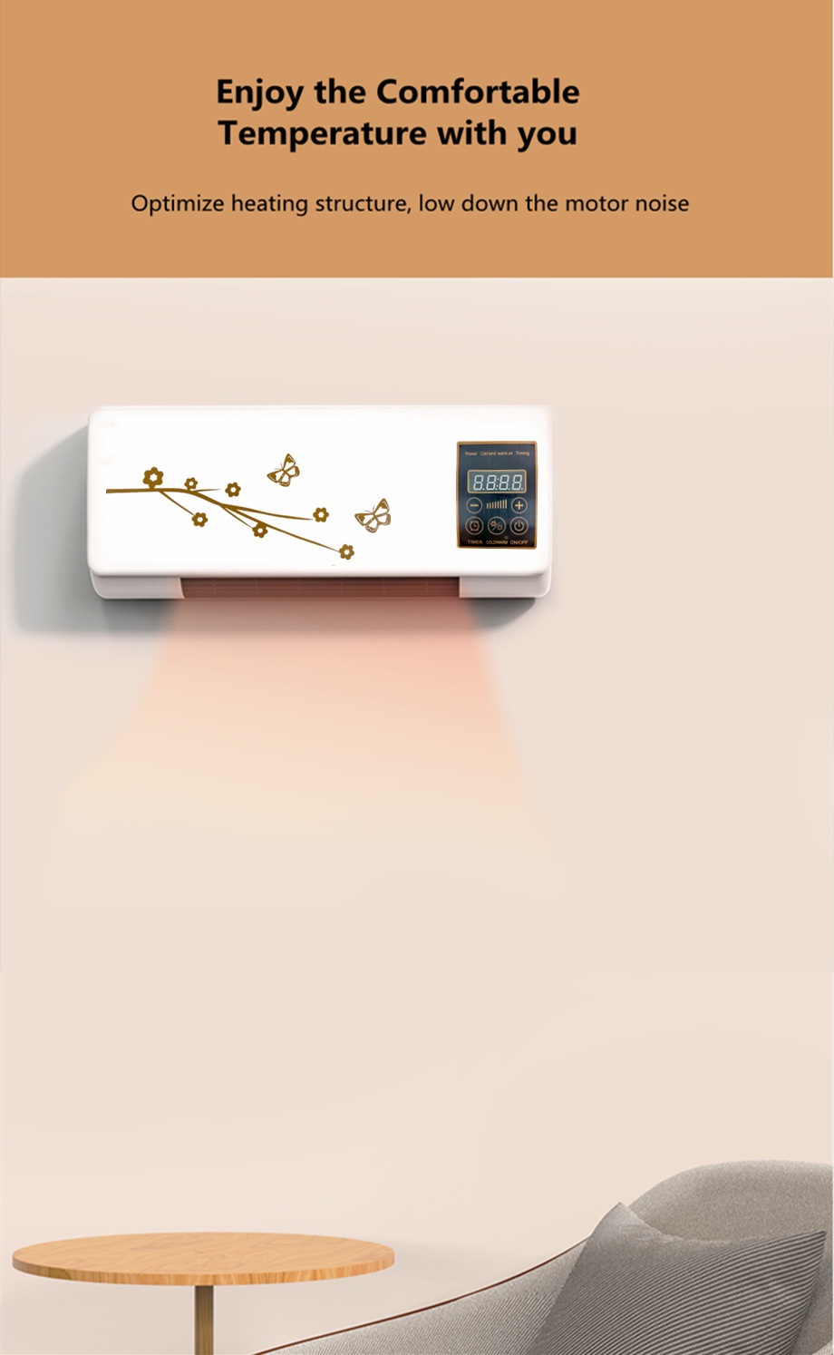 110V 강풍형 크로스보더 벽걸이형 이동식 에어컨 히터, 냉난방 겸용 실내용, 빠른 가열, 즉시 가열, 에너지 절약스토어 가기