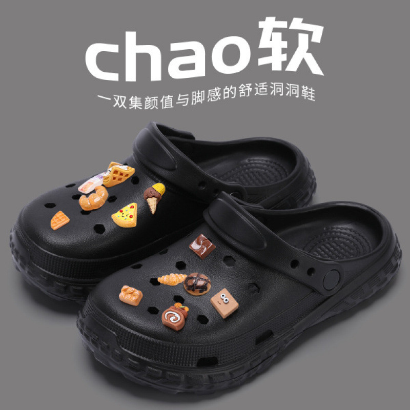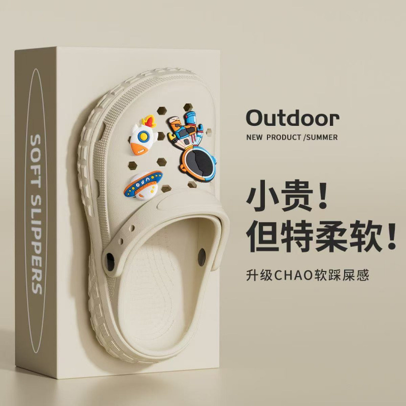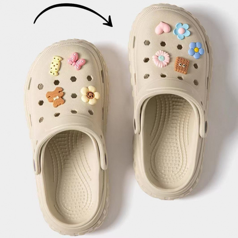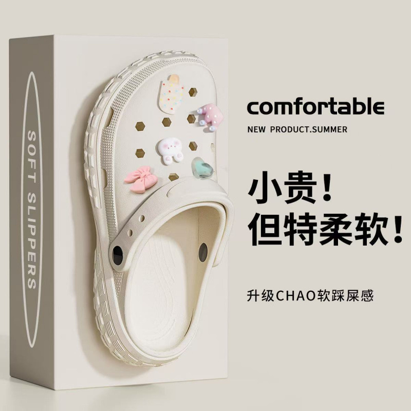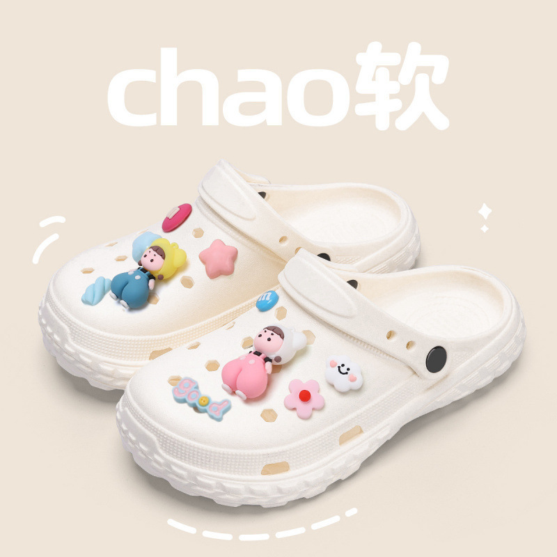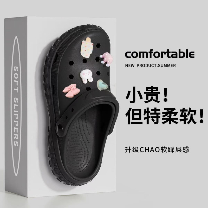 여성을위한 Crocs 2024 새로운 여름 겉옷 귀여운 만화 홈 미끄럼 방지 비치 발가락 샌들 여성을위한