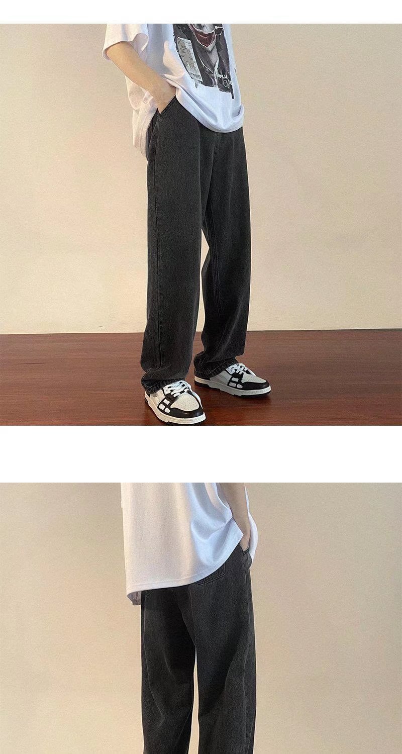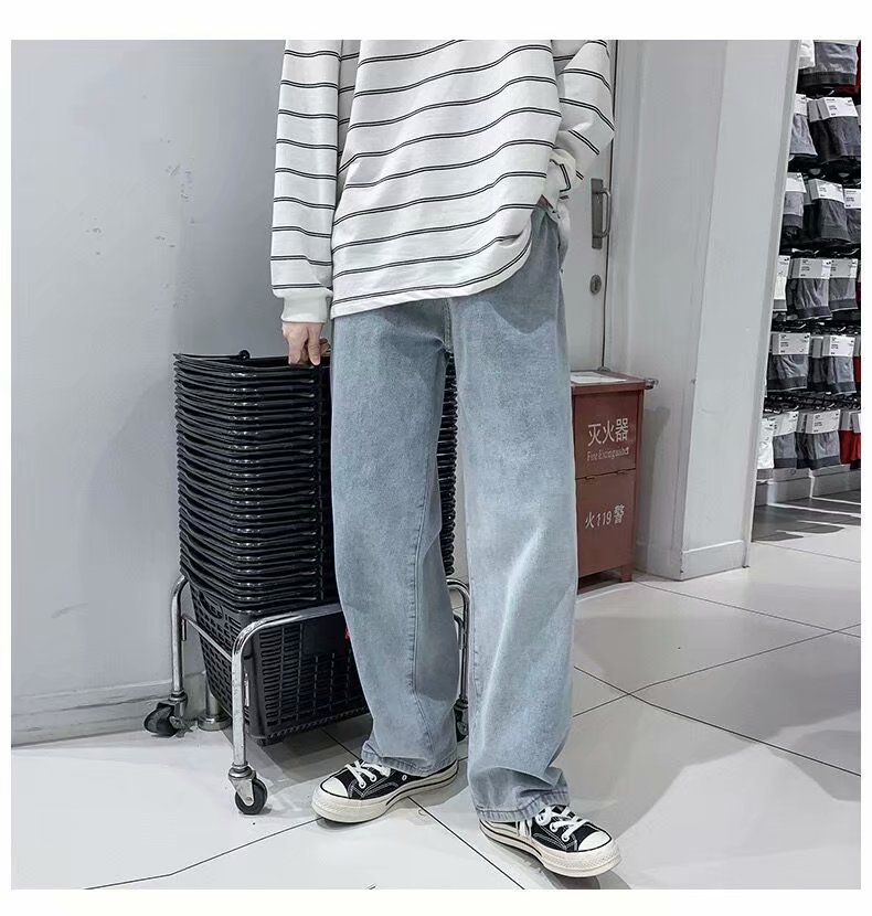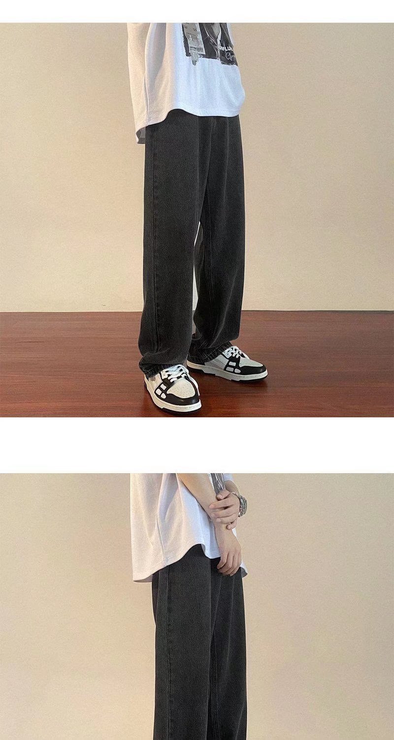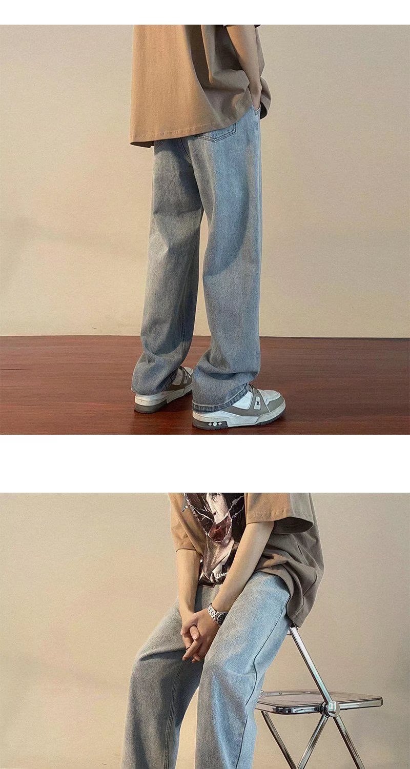홍콩 스타일 일본 복고풍 드로스트링 청바지 남성용 루즈 스트레이트 레그 와이드 레그 아빠 바지 트렌디 하이 스트리트 롱 팬츠스토어 가기