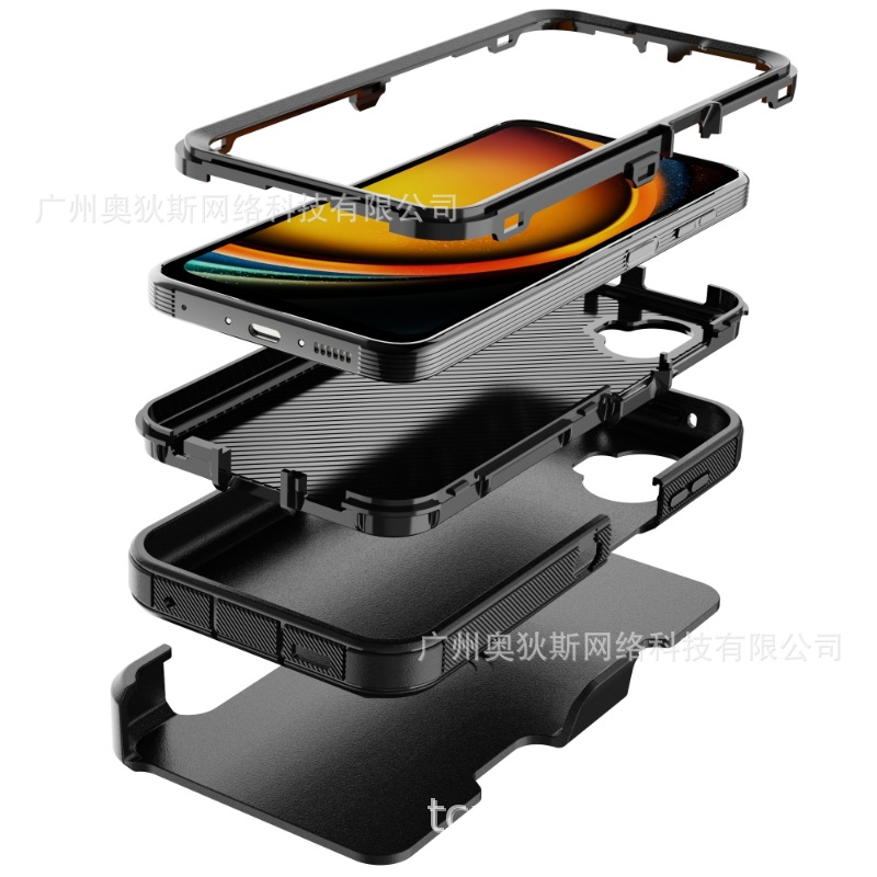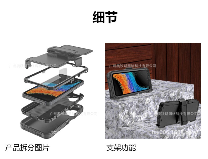 2.【设计构思】双层防护,三项材质结合,内层是由2个PC硬壳前后组成,可以的固定手机不容易松动,可以的屏幕不被划伤, 外层是TPU,在内层的保护之下,外层起到了一种缓冲作用.可以的过度的碰撞而损坏程度。