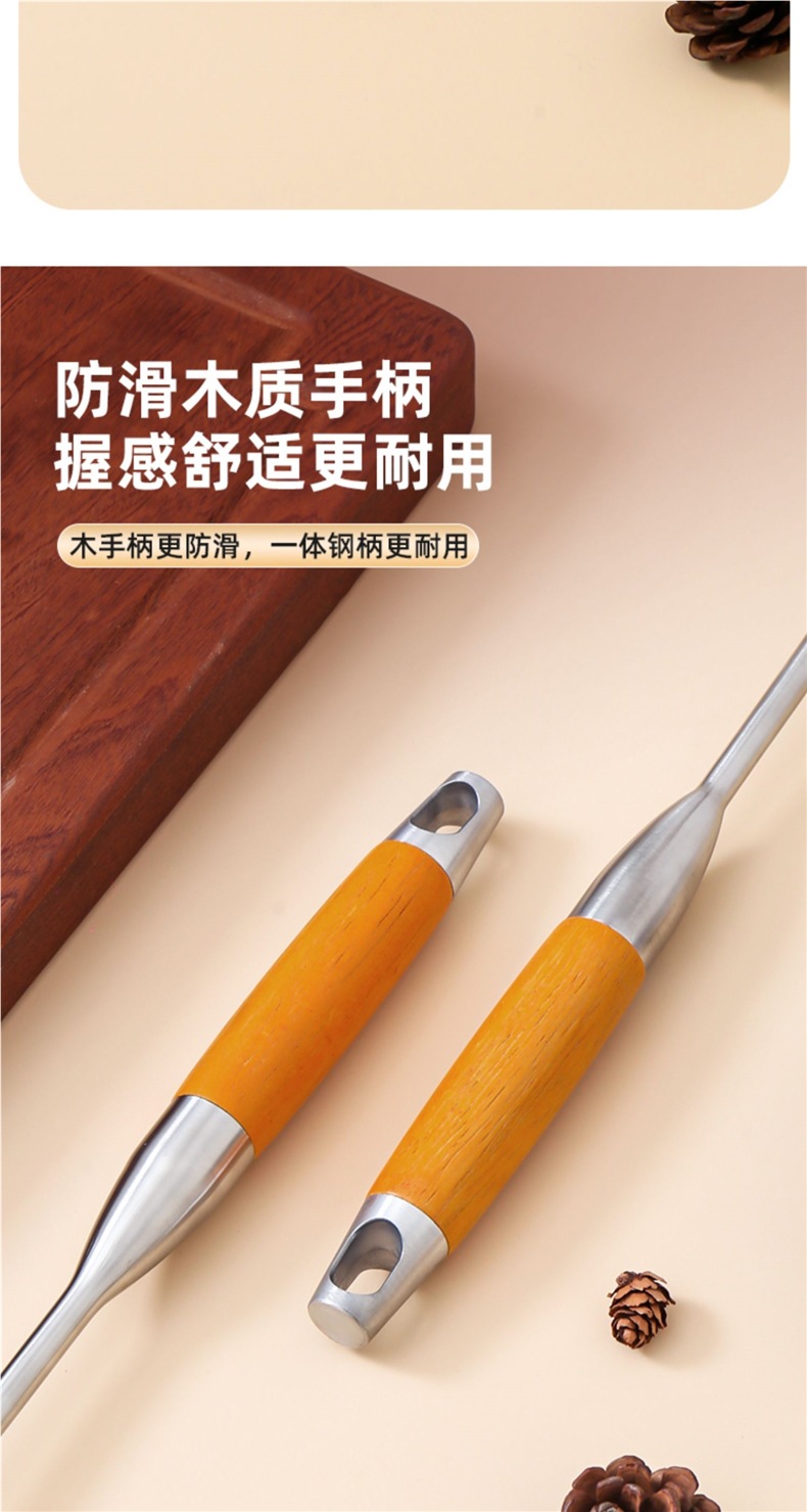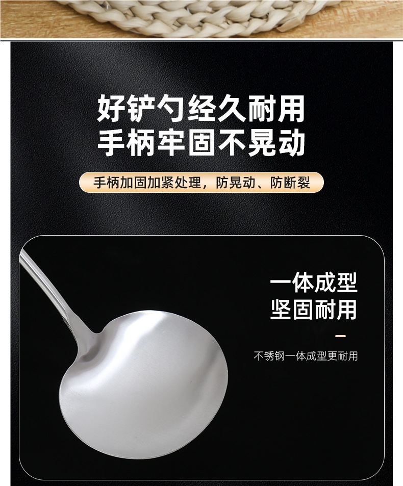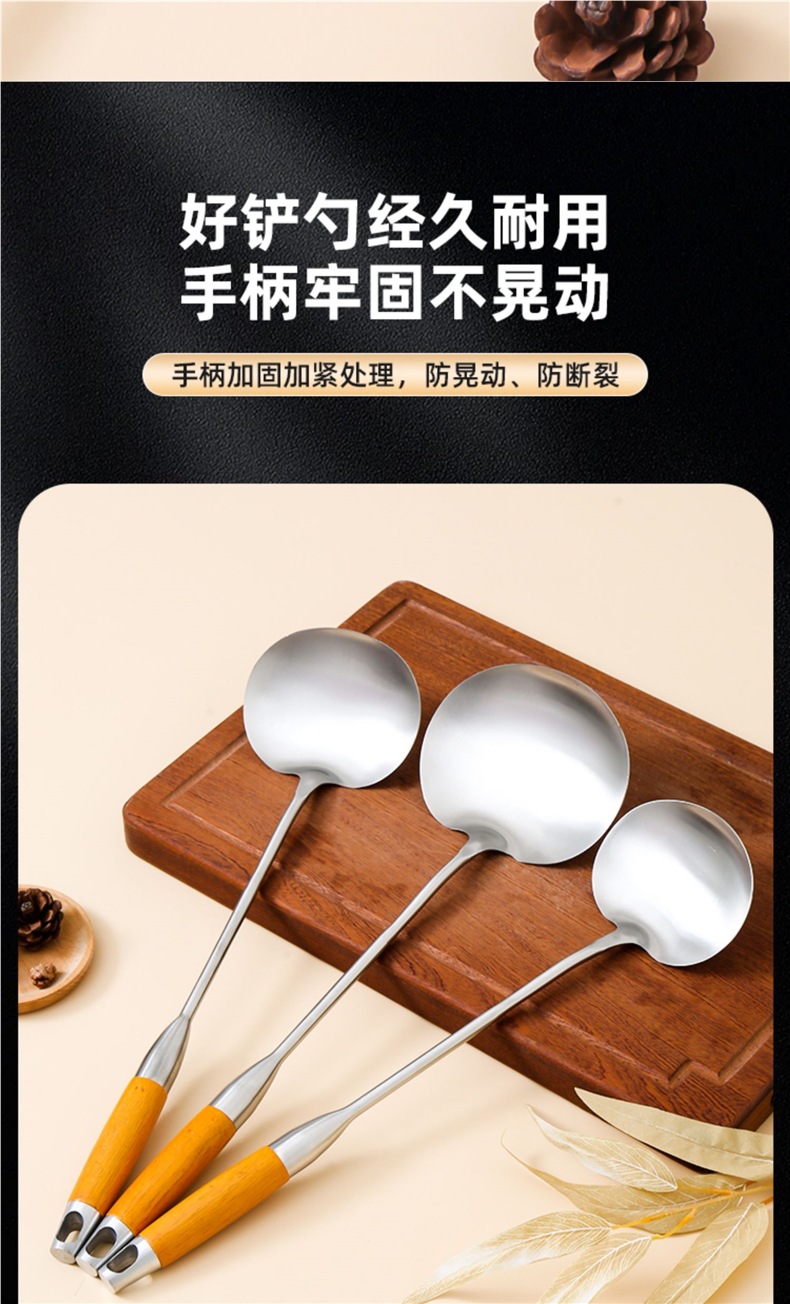 316 스테인레스 스틸 프라이팬 스푼 두꺼운 요리 스푼 주걱 식품 등급 가정용 주방 용품 나무 손잡이 주걱 세트 철 주걱