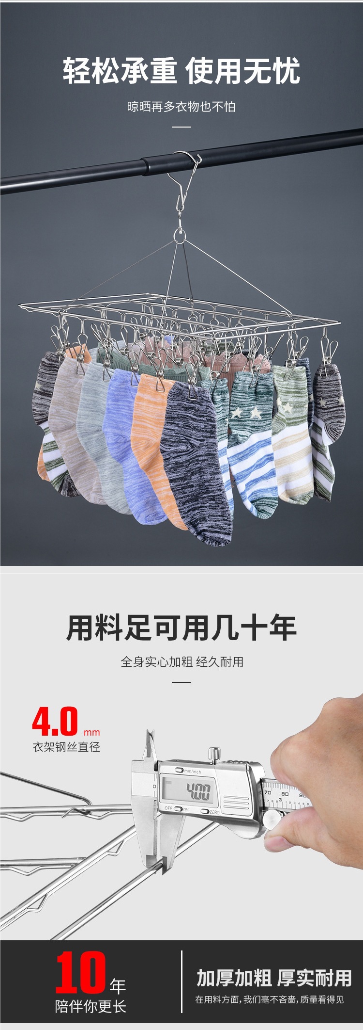 양말 건조대, 멀티 클립, 방풍 가정용 디스크, 특대형 스테인레스 스틸 빨래집게, 후크, 빨래 건조대 없음