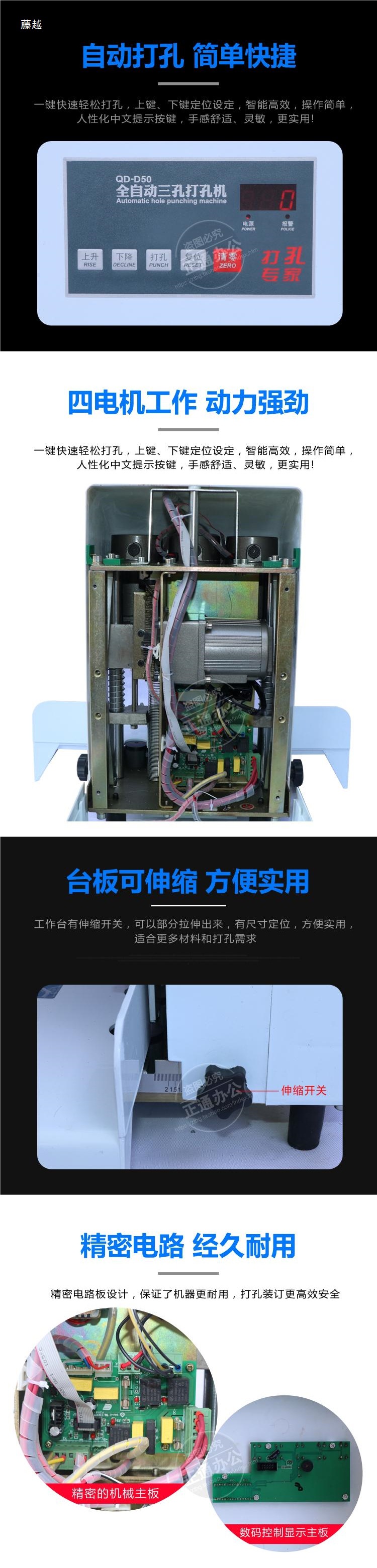 Baoyu QD-D50 전자동 3홀 천공기 인사파일 제본기 전동 천공기 3홀 천공기