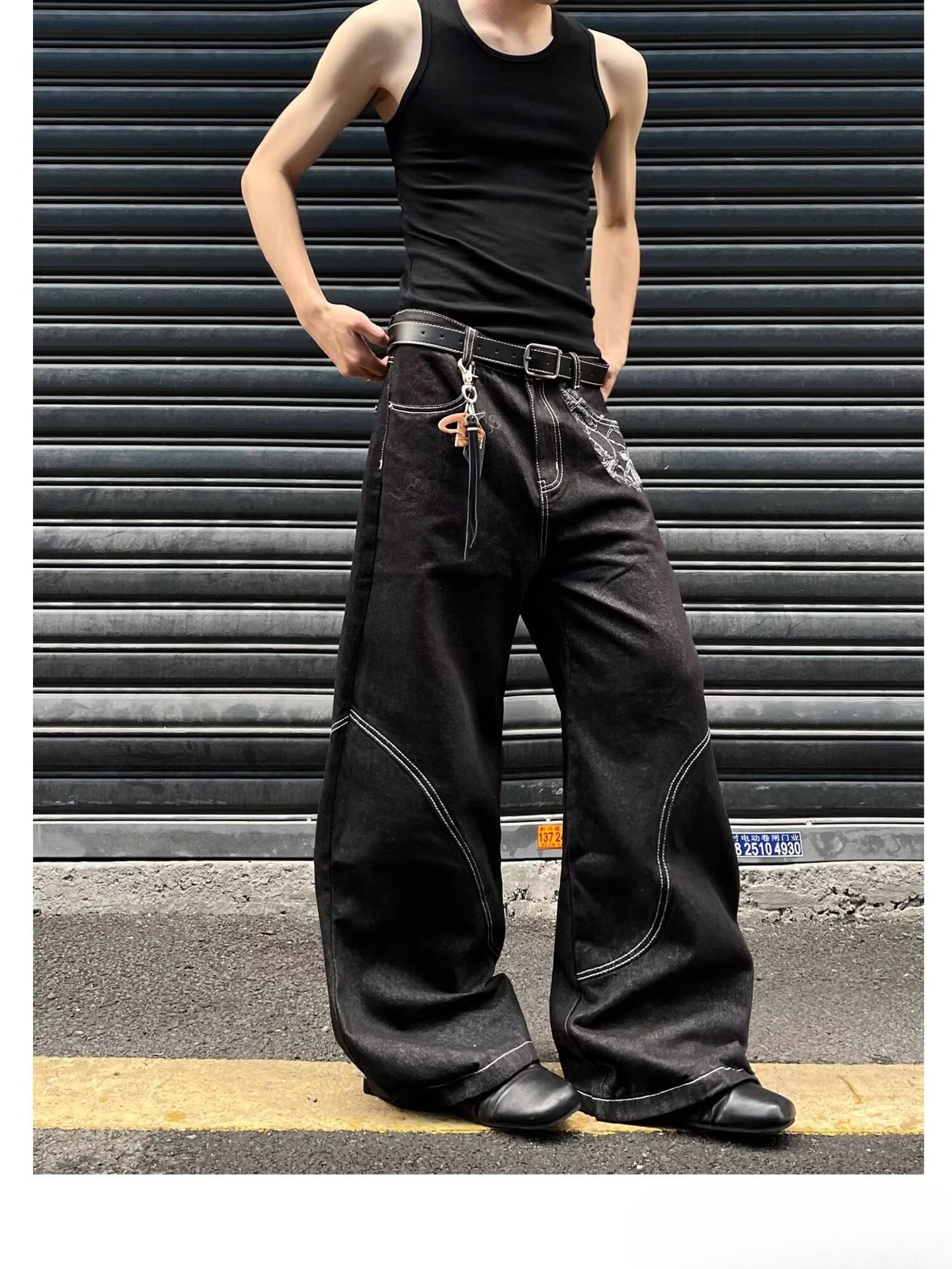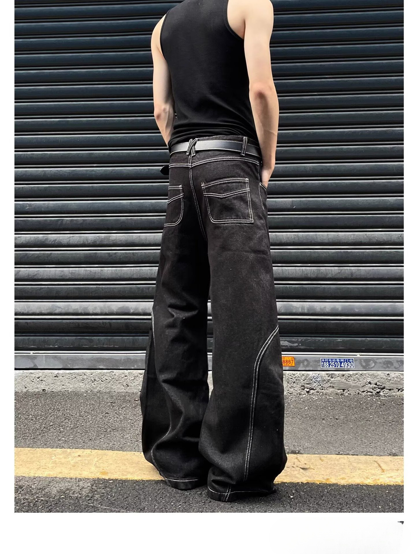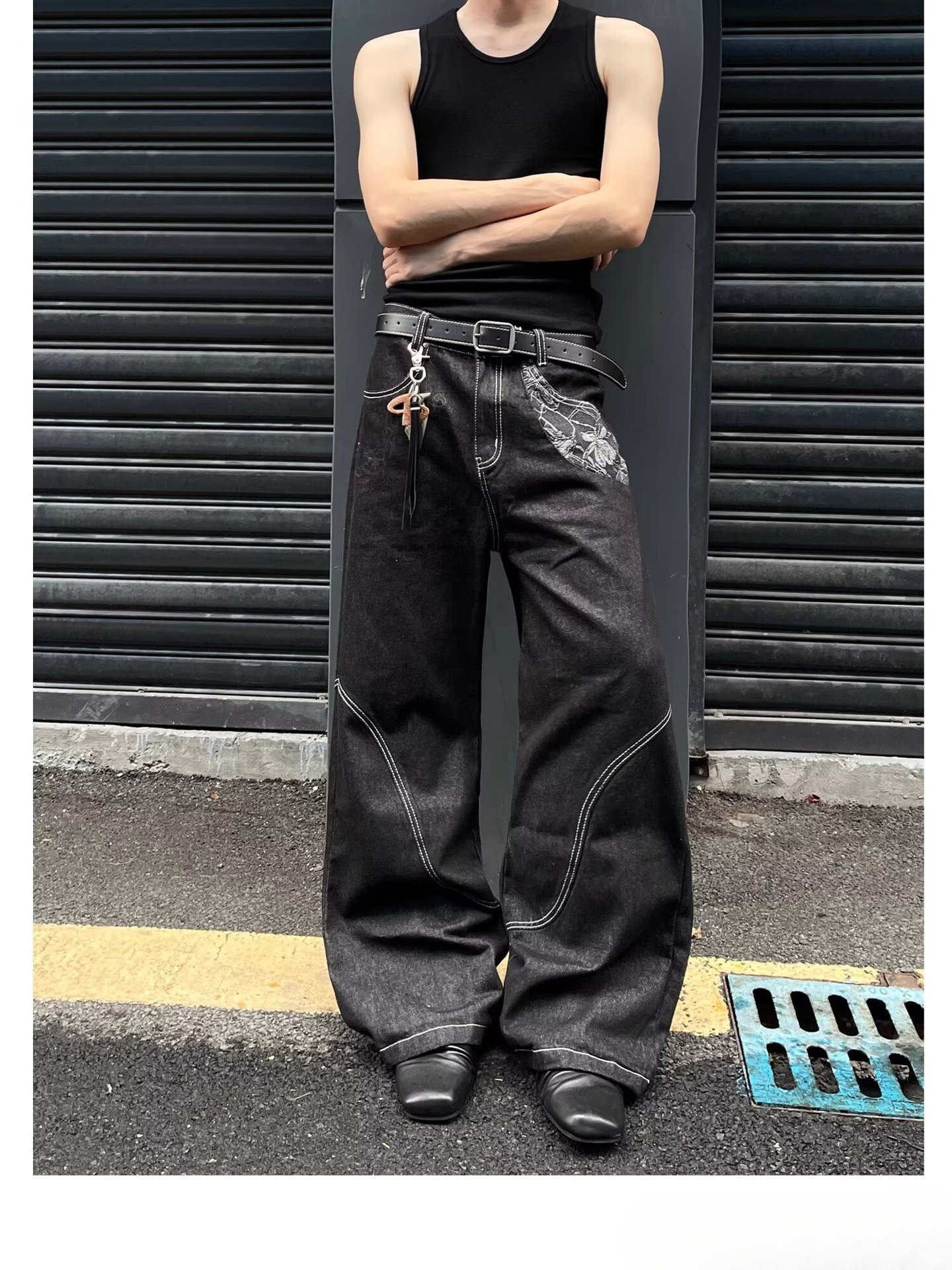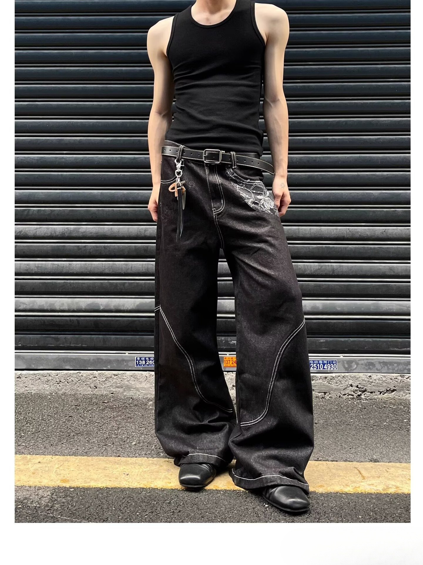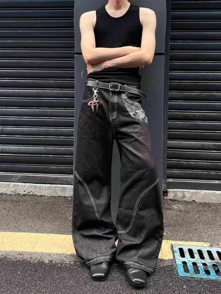 아메리칸 바이브 레트로 스네이크 트랙 오리지널 카우 트렌디 브랜드 뉴 워싱 디스트레스드 청바지 남성 스트레이트 레그 마이크로 플레어 슬림 팬츠