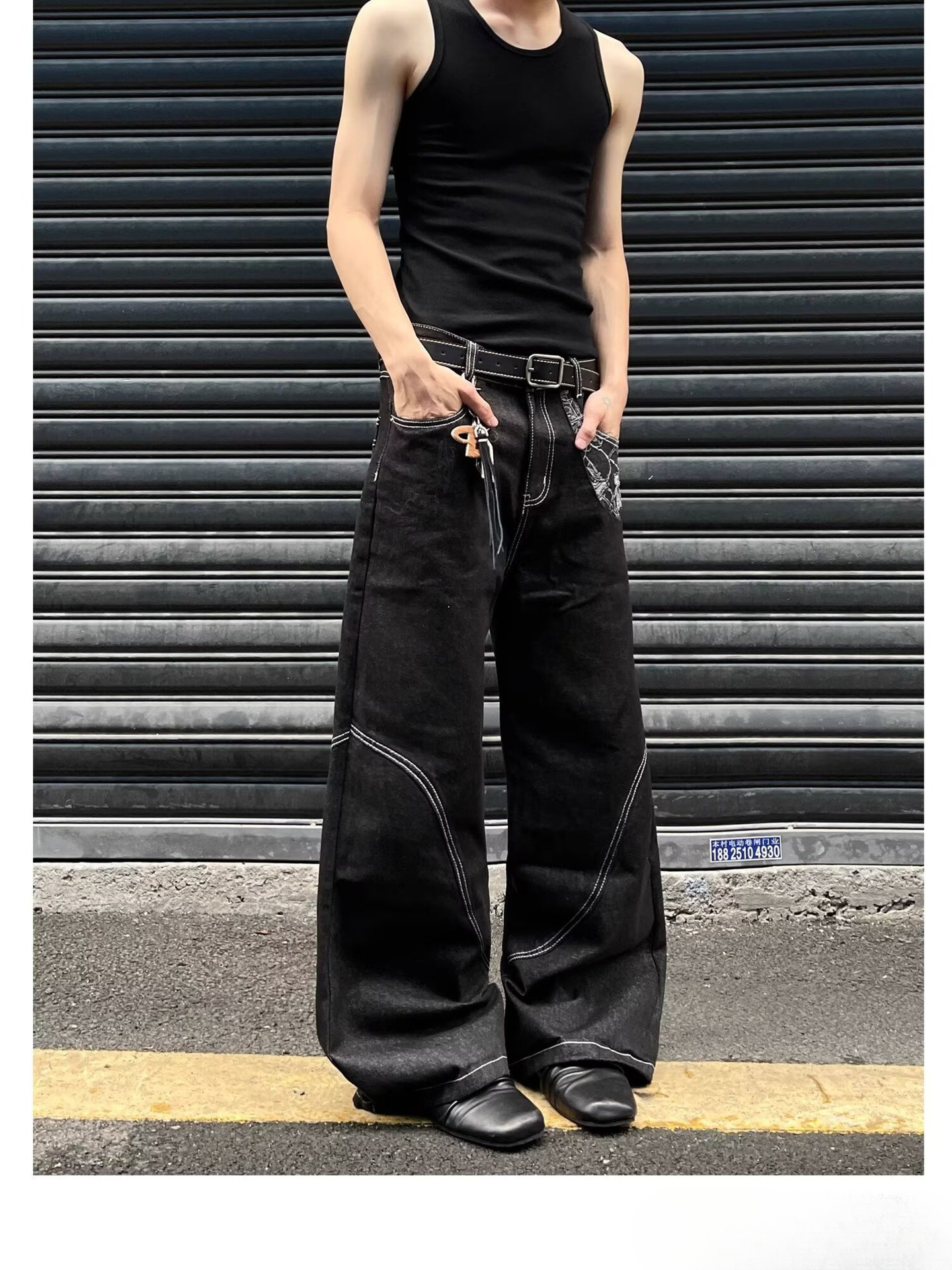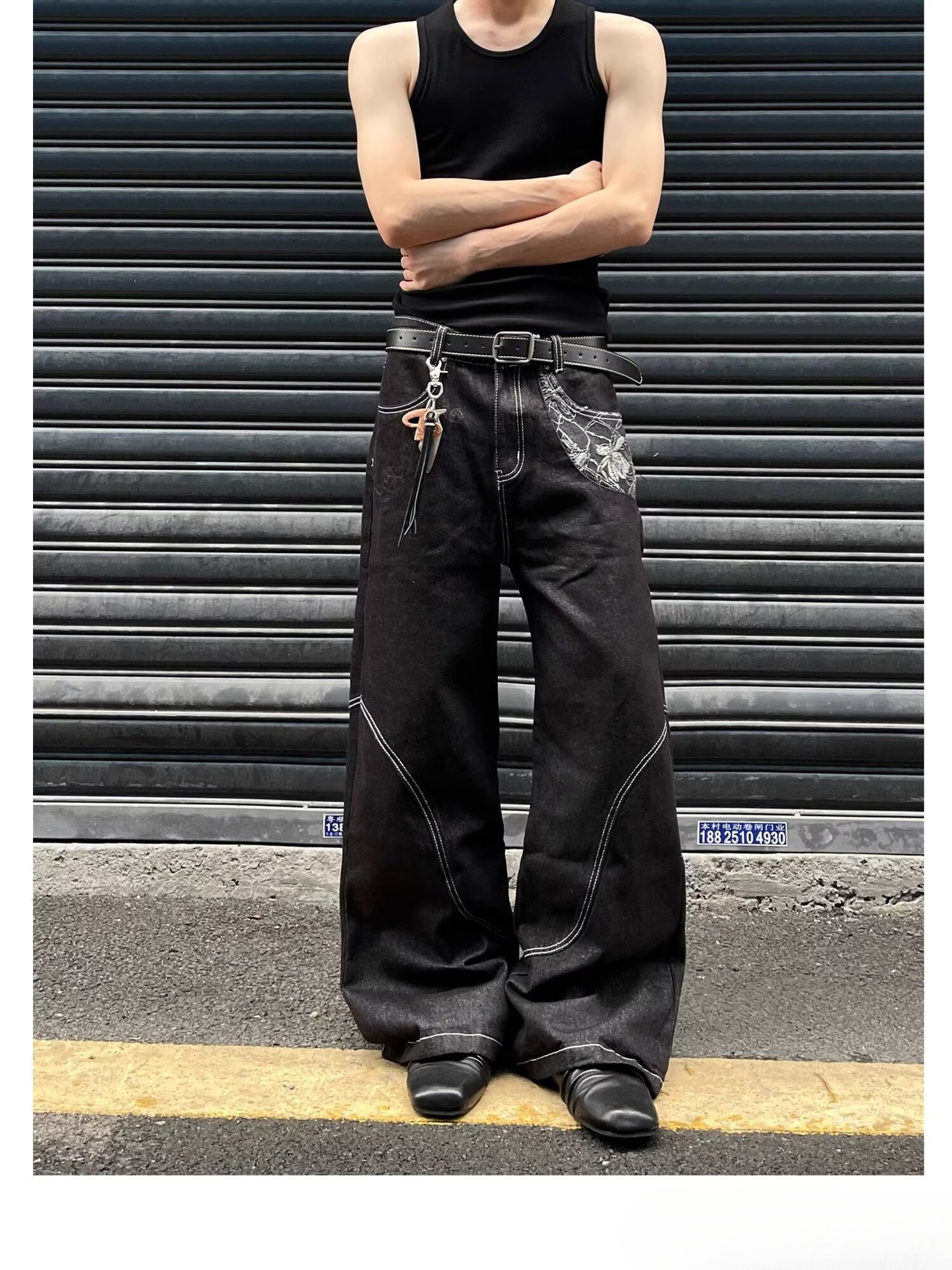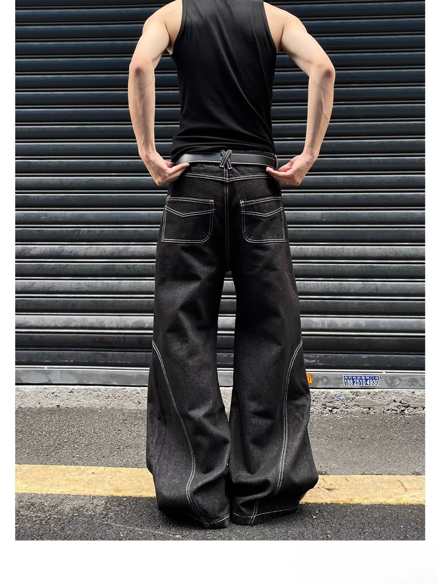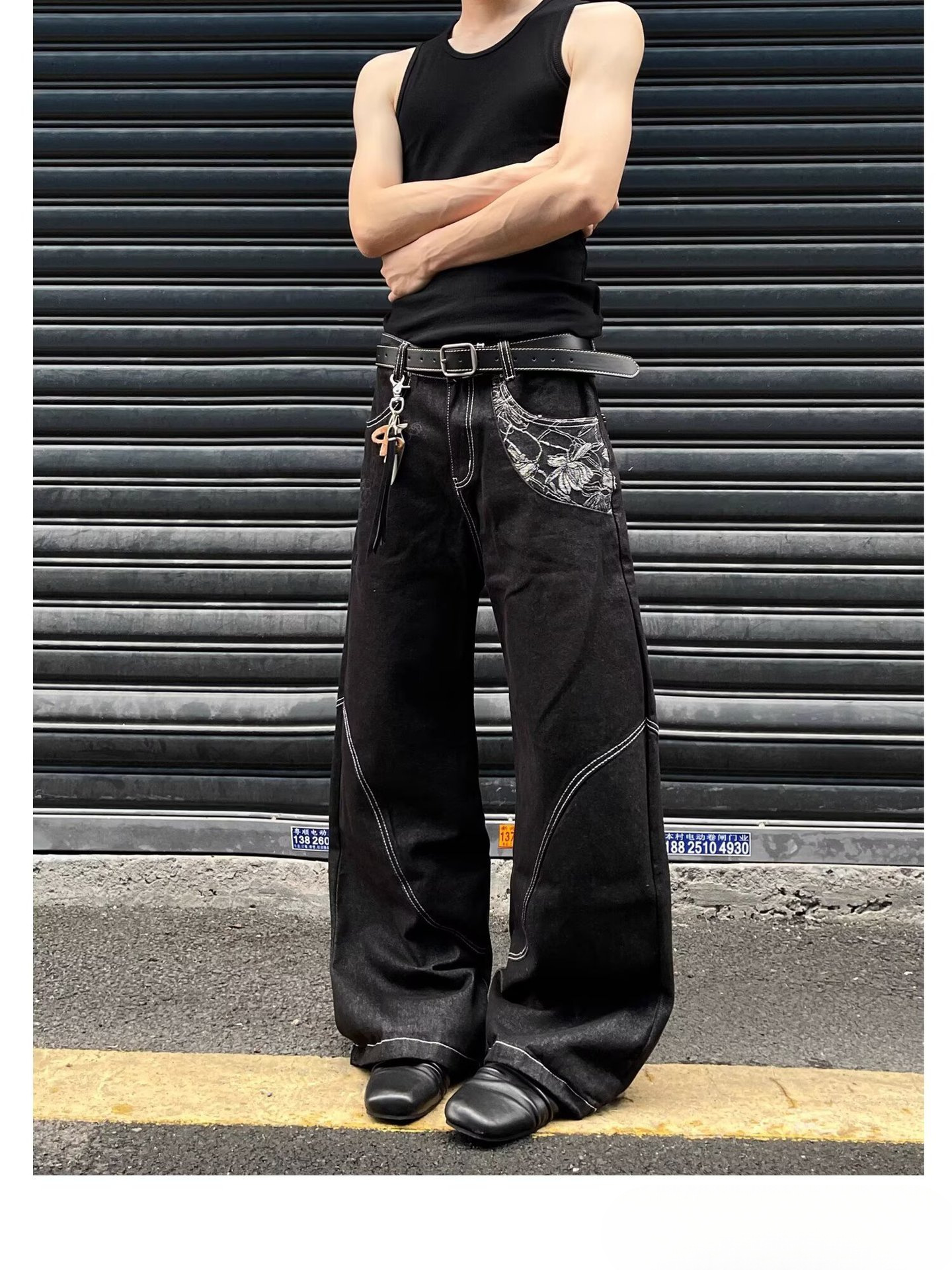 아메리칸 바이브 레트로 스네이크 트랙 오리지널 카우 트렌디 브랜드 뉴 워싱 디스트레스드 청바지 남성 스트레이트 레그 마이크로 플레어 슬림 팬츠