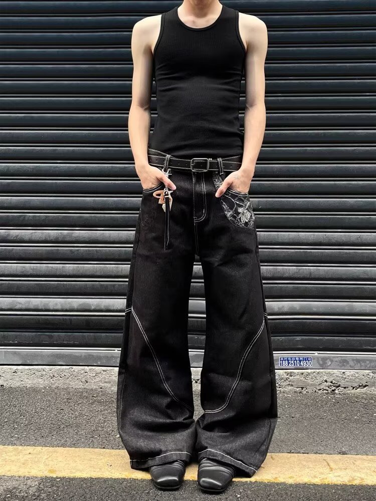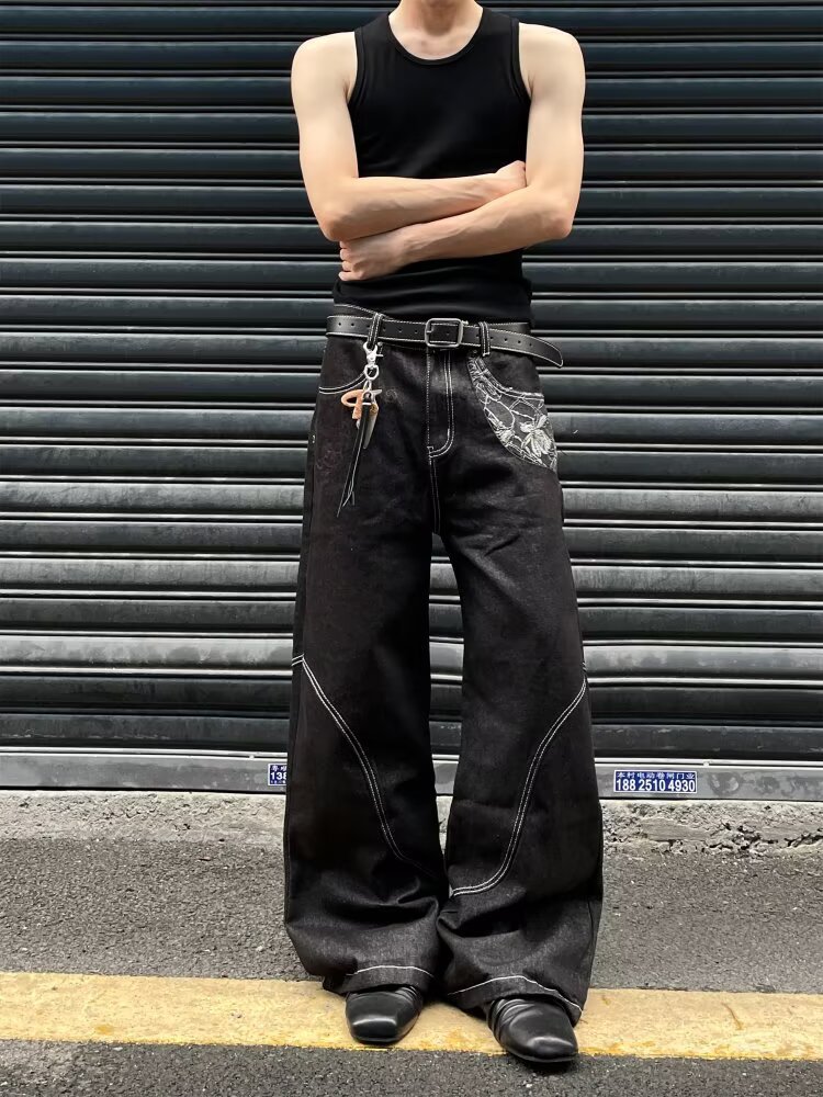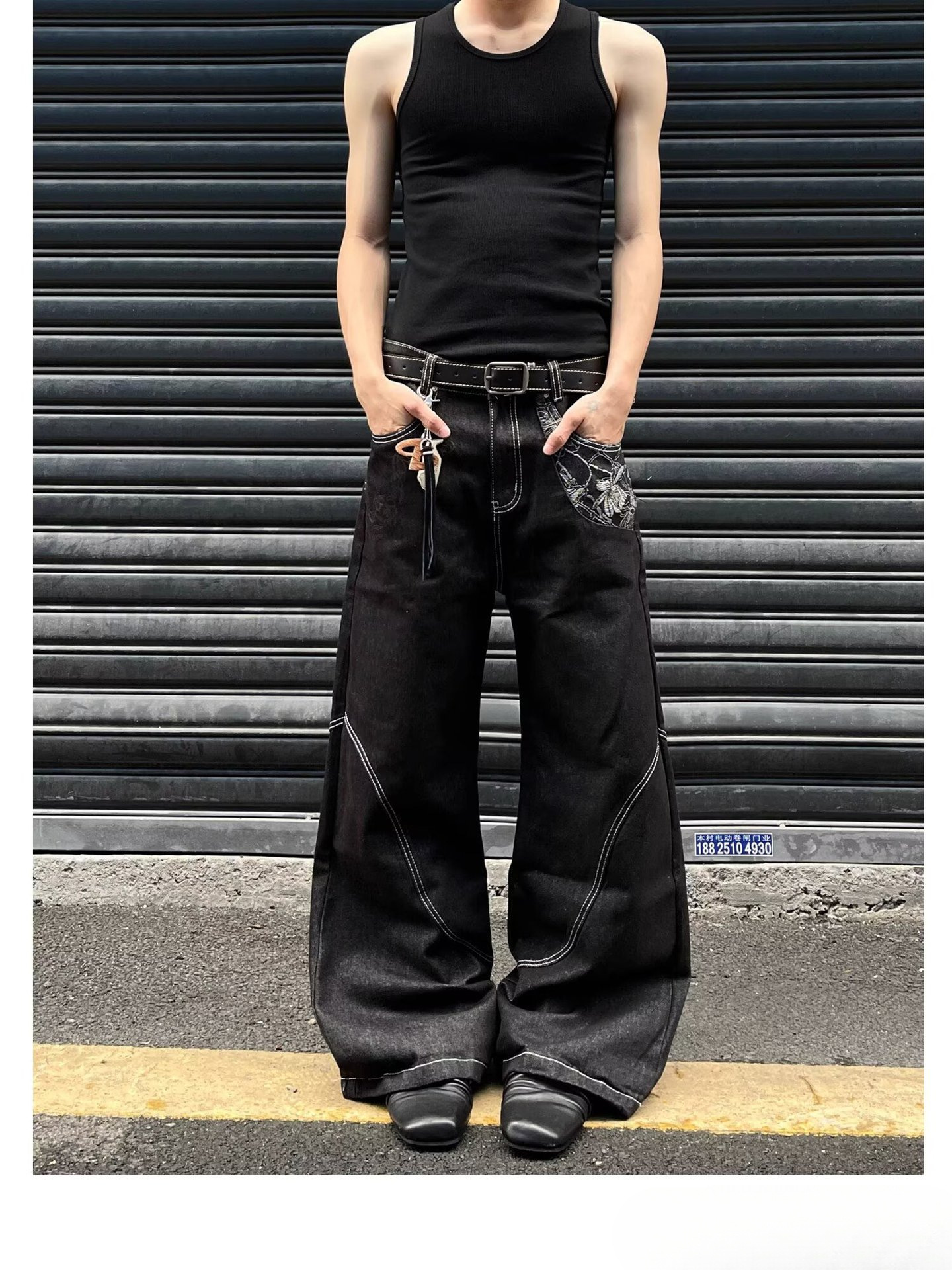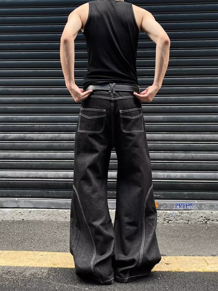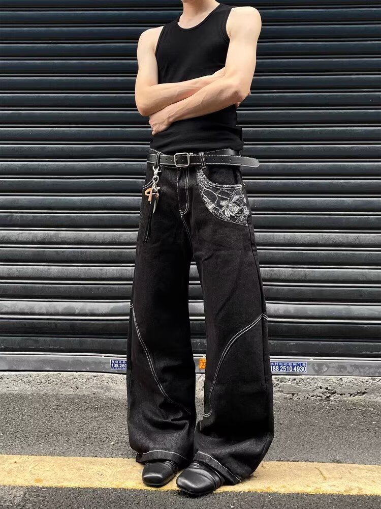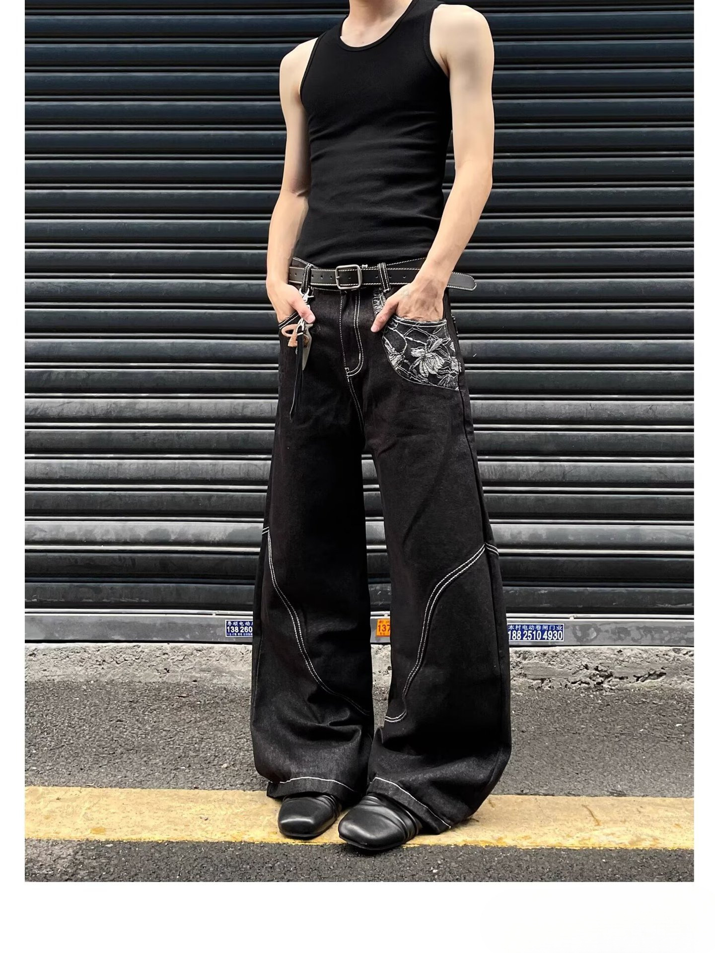 아메리칸 바이브 레트로 스네이크 트랙 오리지널 카우 트렌디 브랜드 뉴 워싱 디스트레스드 청바지 남성 스트레이트 레그 마이크로 플레어 슬림 팬츠