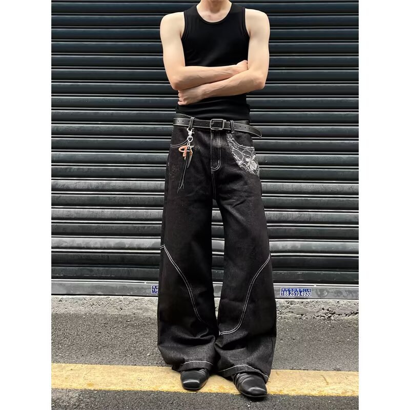 아메리칸 바이브 레트로 스네이크 트랙 오리지널 카우 트렌디 브랜드 뉴 워싱 디스트레스드 청바지 남성 스트레이트 레그 마이크로 플레어 슬림 팬츠스토어 가기