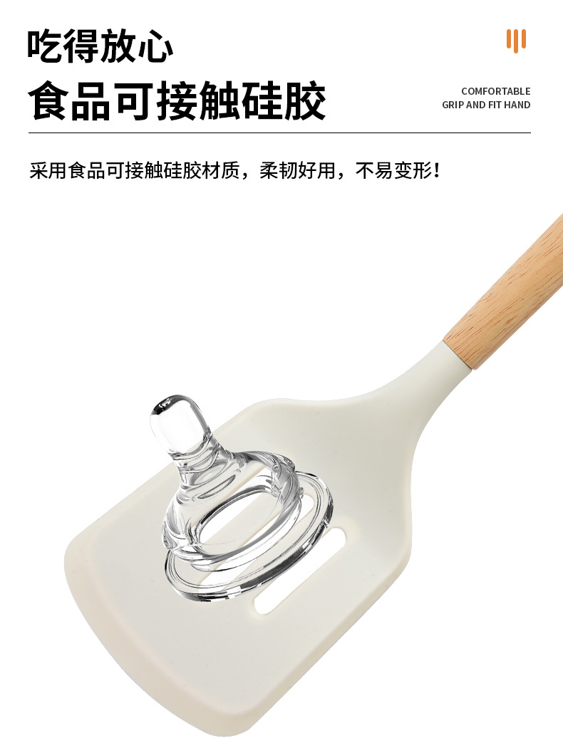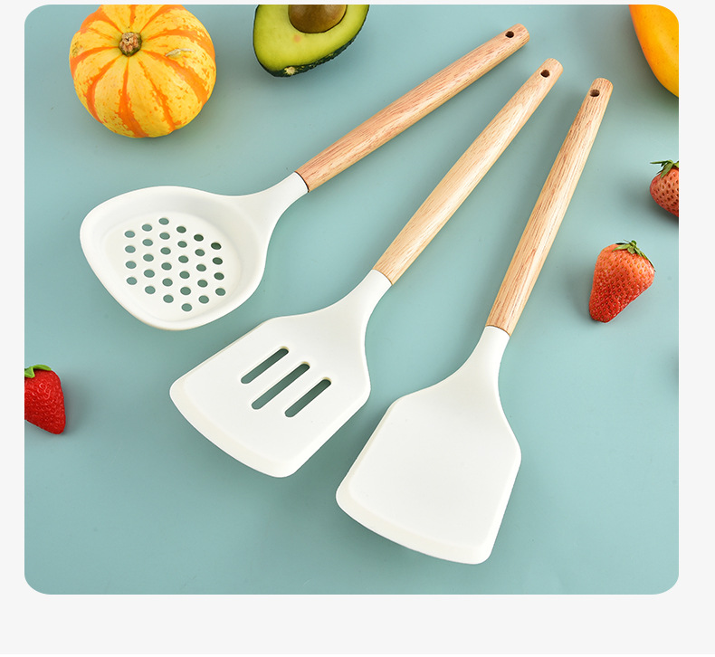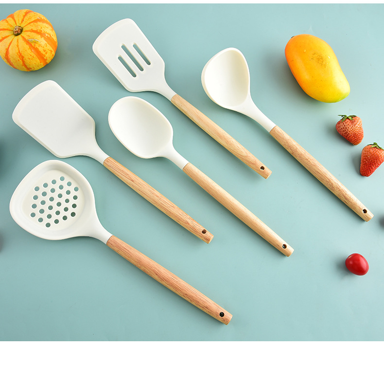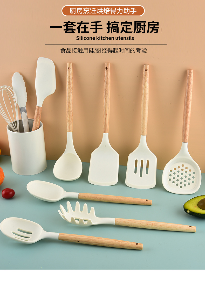 국경을 넘는 새로운 나무 손잡이 실리콘 주방 용품 11 피스 세트 너도밤 나무 주걱 세트 주방 요리 도구 실리콘 주걱